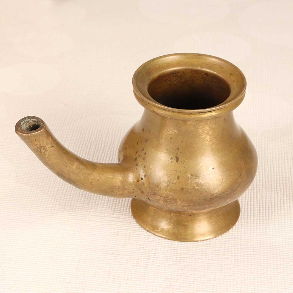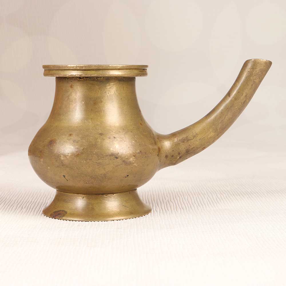 Bring sacredness and solemnity to your home with our vintage brass holy water pot with spout. This elegant vessel allows you to keep holy water close for prayer, ritual, and reflection. Carry on cherished traditions and connect to the divine with this special holy water pot. Designed to contain one of the most sacred substances for blessing, protection, and cleansing, this brass pot allows you to honor religious customs in your daily spiritual practice. Keep it in a place of prominence so holy water is always near for sacred rituals. The vintage styling and ample capacity make this vessel ideal for use in the home or sacred space. Let its regal beauty inspire prayer and contemplation.