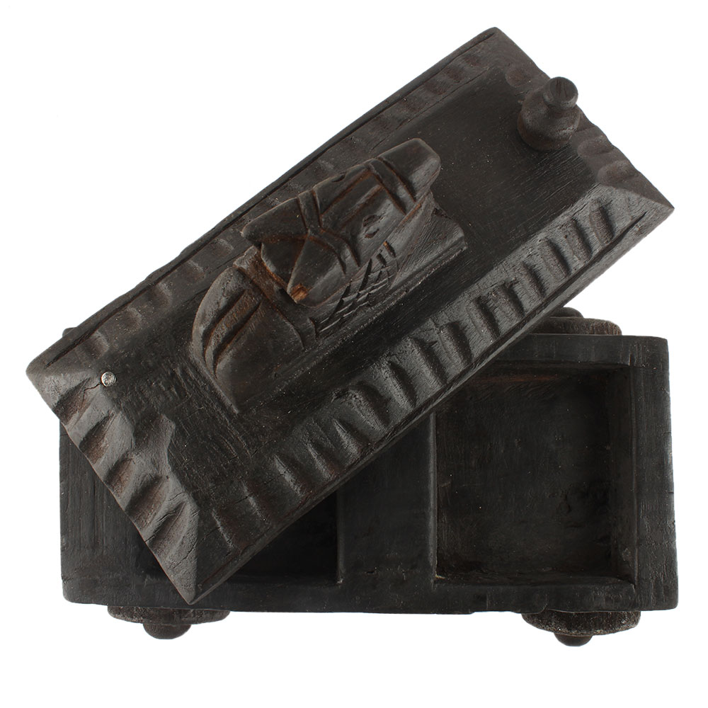 Vintage Handcrafted Old Nandi Wooden Spice Box Masala Dabba Spice Box