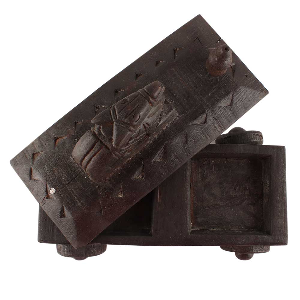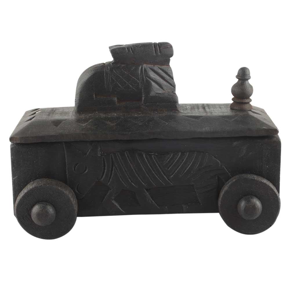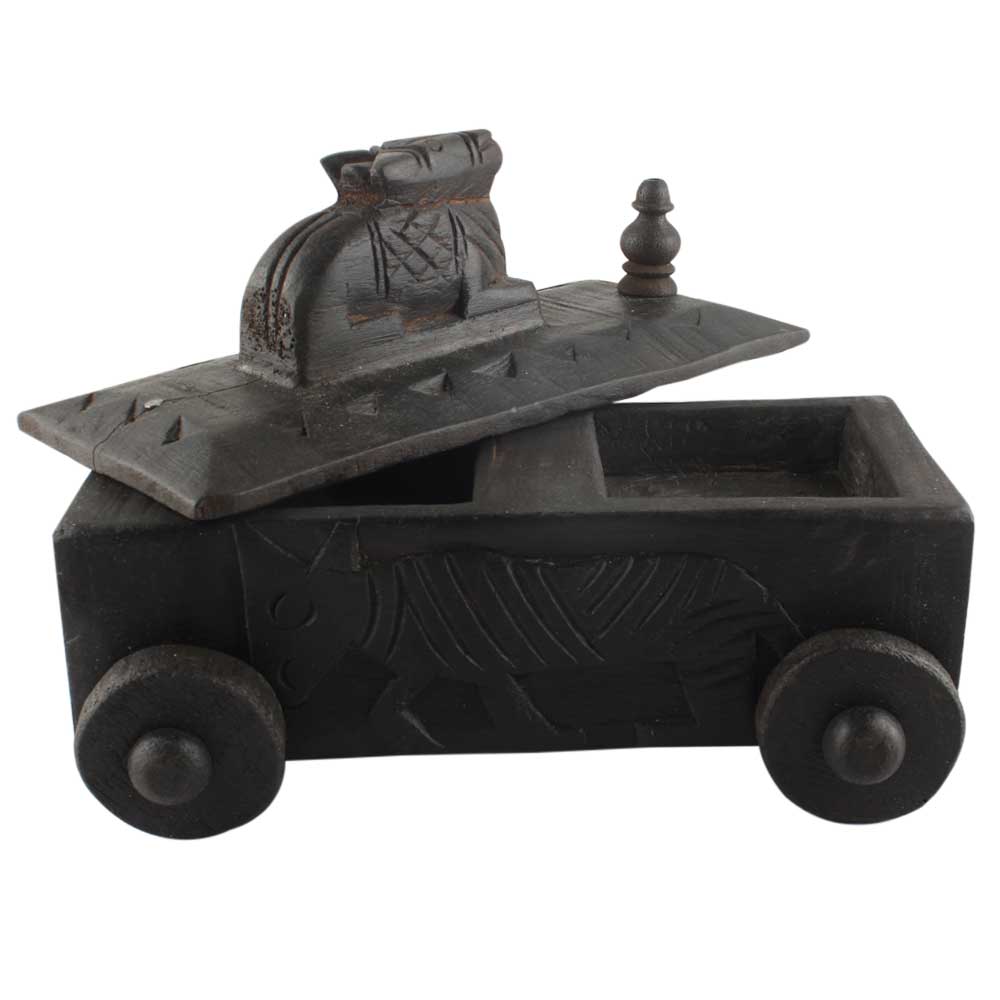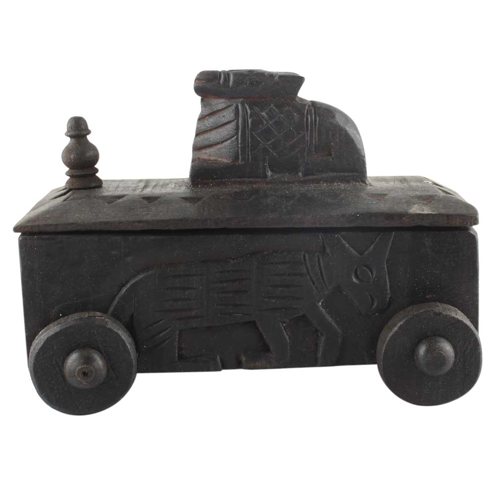 Vintage Handcrafted Old Nandi Wooden Spice Box With Wheels