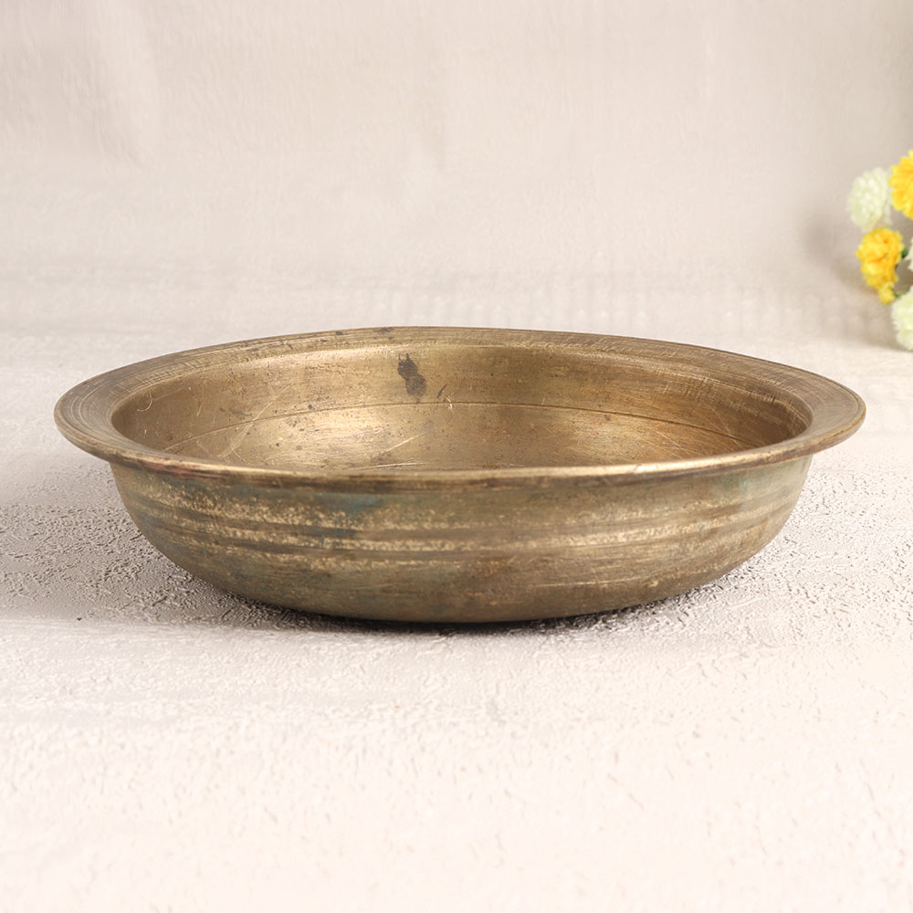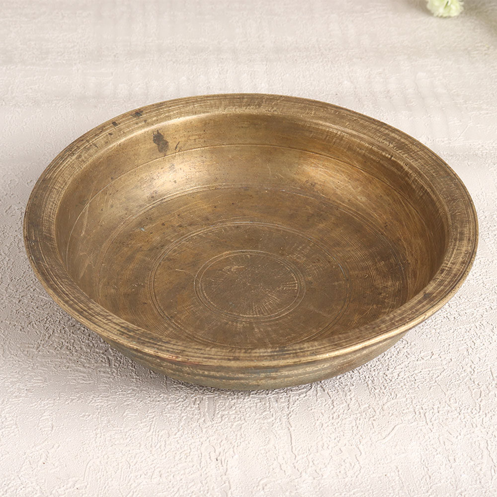 A vintage brass bowl that transcends utility to become a symbol of artistry and tradition. Crafted by highly skilled and experienced Indian artisans, this exquisite piece boasts an antique brown finish that exudes a sense of history and charm. This versatile treasure is initially designed as a god bathtub and can find its place in your home, office, hotel, cafe, shop, restaurant, or prayer room. Its multifaceted functionality extends to becoming a striking focal point for flower decoration. Embrace this bowl as a prized addition to your vintage collection, perfect for showcasing at exhibitions and curating a captivating narrative of heritage. Beyond personal enjoyment, this brass bowl makes for a thoughtful gift to your loved ones on special, festive, or auspicious occasions. Whether you're celebrating a wedding, housewarming, or any milestone event, this piece speaks volumes about your appreciation for tradition, craftsmanship, and timeless elegance.