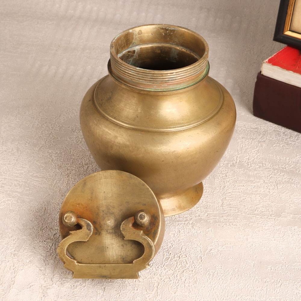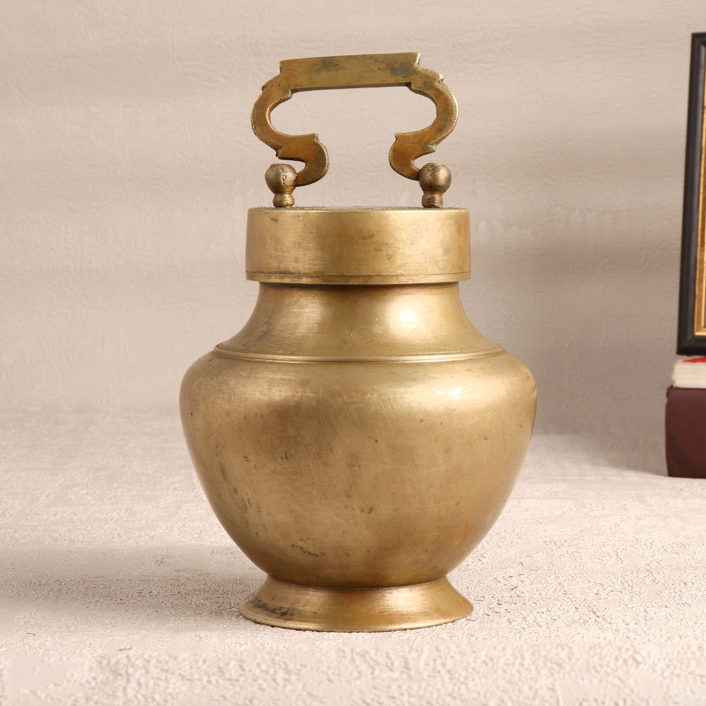 Enhance your spiritual and aesthetic ambiance with our exquisite Vintage Brass Holy Water Pot which is also known as Ganga Jali. Handcrafted by highly skilled Indian artisans, this piece is a testament to the timeless artistry and devotion that echoes through generations. The pot, with its charming lid and sturdy handle, is designed to cradle holy Ganga water during prayers or to showcase vibrant floral arrangements, adding a touch of divinity to any space. Distinguished by its antique brown finish, the pot is meticulously crafted from high-quality brass, reflecting the enduring elegance of bygone eras. Its versatile charm makes it a perfect addition to your home, office, restaurant, hotel, or cafe, serving as a captivating decor piece. Ideal for collectors of vintage treasures, this holy water pot is a precious gem that can be proudly displayed or gifted to loved ones on special, festive, or auspicious occasions.