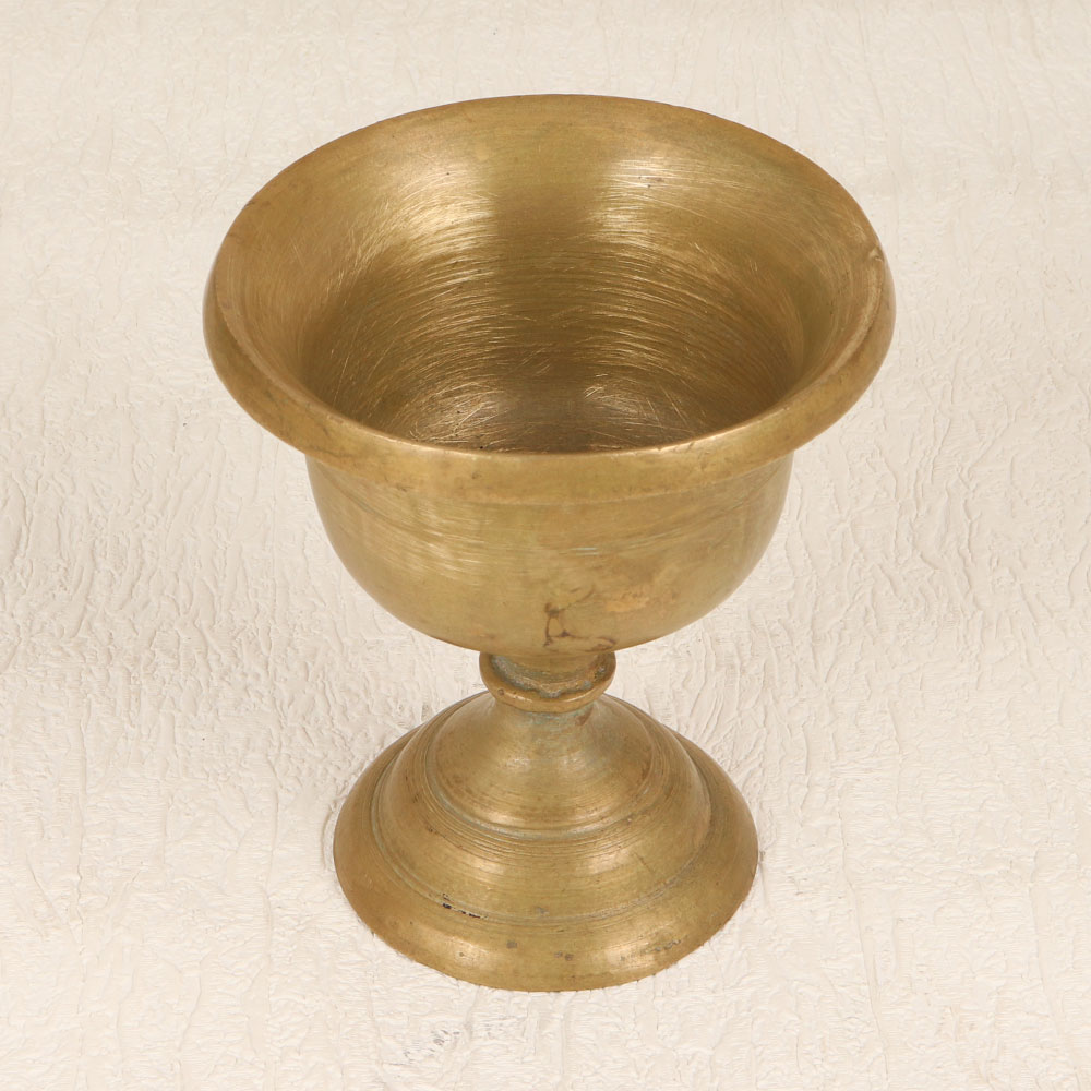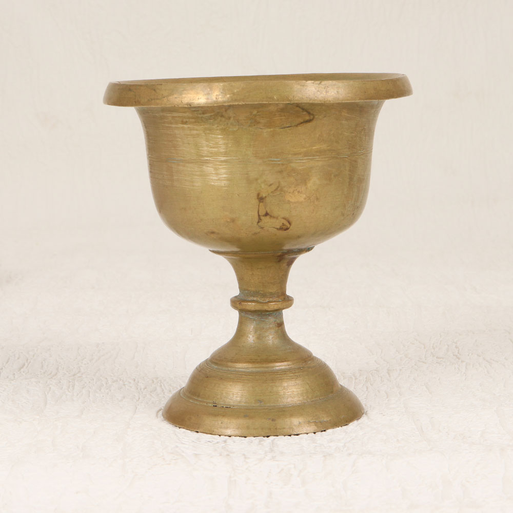 Enhance your spiritual and aesthetic experience with our exquisite Vintage Brass Kumkum Cup with Base Stand which is a timeless piece meticulously crafted by skilled Indian artisans. This authentic prayer accessory is made from high-quality brass, showcasing an antique brown finish that adds a touch of vintage elegance. Designed for use during prayers, rituals, and havans, this kumkum cup serves as a sacred vessel to hold auspicious kumkum tilak. Its intricate detailing and handmade craftsmanship reflect the rich cultural heritage of India. Versatile in its application, this piece can grace the prayer rooms of homes, offices, restaurants, hotels, or cafes, serving both spiritual and decorative purposes. Whether you're a collector of vintage treasures or seeking a meaningful gift, this brass kumkum cup is a perfect addition to your collection. Share the blessings by gifting it to your loved ones on special, festive, or auspicious occasions.
