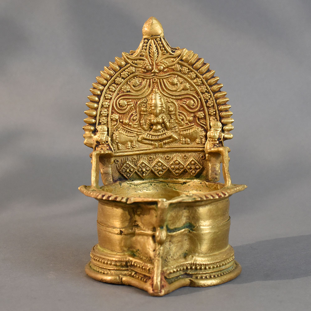 - Handmade brass diya with intricate South Indian temple-inspired design