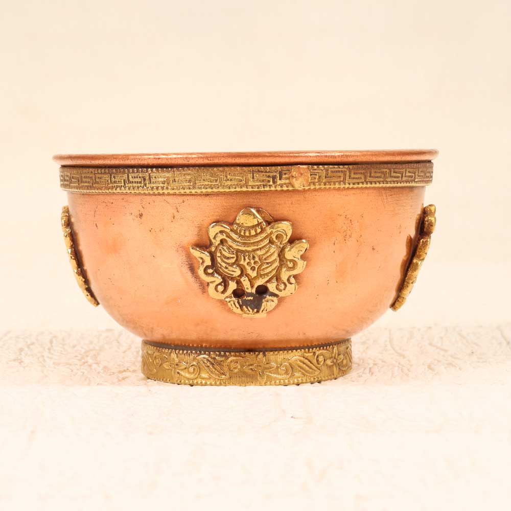 Transport yourself to the majesty of the Himalayas with this exquisite copper brass bowl handcrafted using traditional Nepalese techniques. The intricate repoussé design etched into the metal conjures up visions of snow-capped peaks and verdant valleys, bringing a touch of Nepalese artistry into your home. This decorative bowl makes a stunning centerpiece on coffee and dining tables. The coppery sheen is sure to spark conversation and delight your guests. Place it on an entryway table or console to welcome visitors into your home with old-world charm. Or fill it with potpourri, candles, or fresh fruit for an elegant accent. Handmade by skilled artisans using hammering and chiseling to shape each delicate pattern, this bowl celebrates the richness of Nepalese handicrafts. The heavy brass construction promises durability and lasting beauty as a family heirloom. For those who appreciate cultural artworks, this bowl makes a meaningful addition to any décor.
