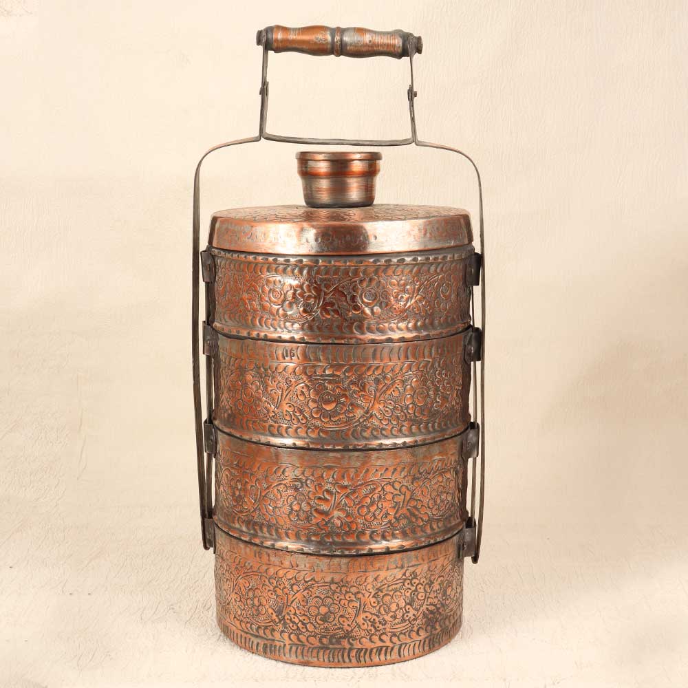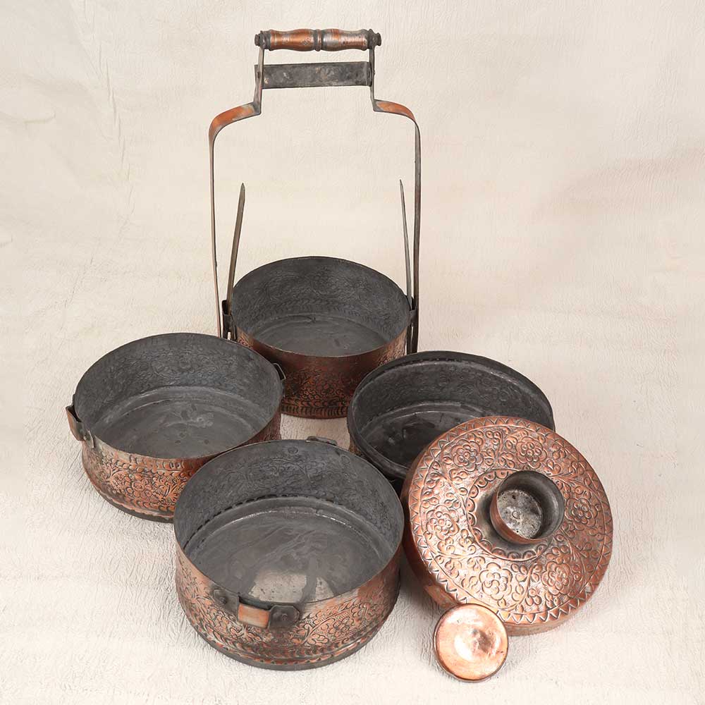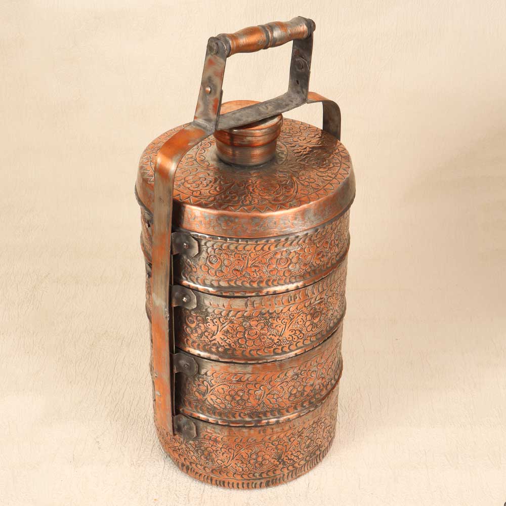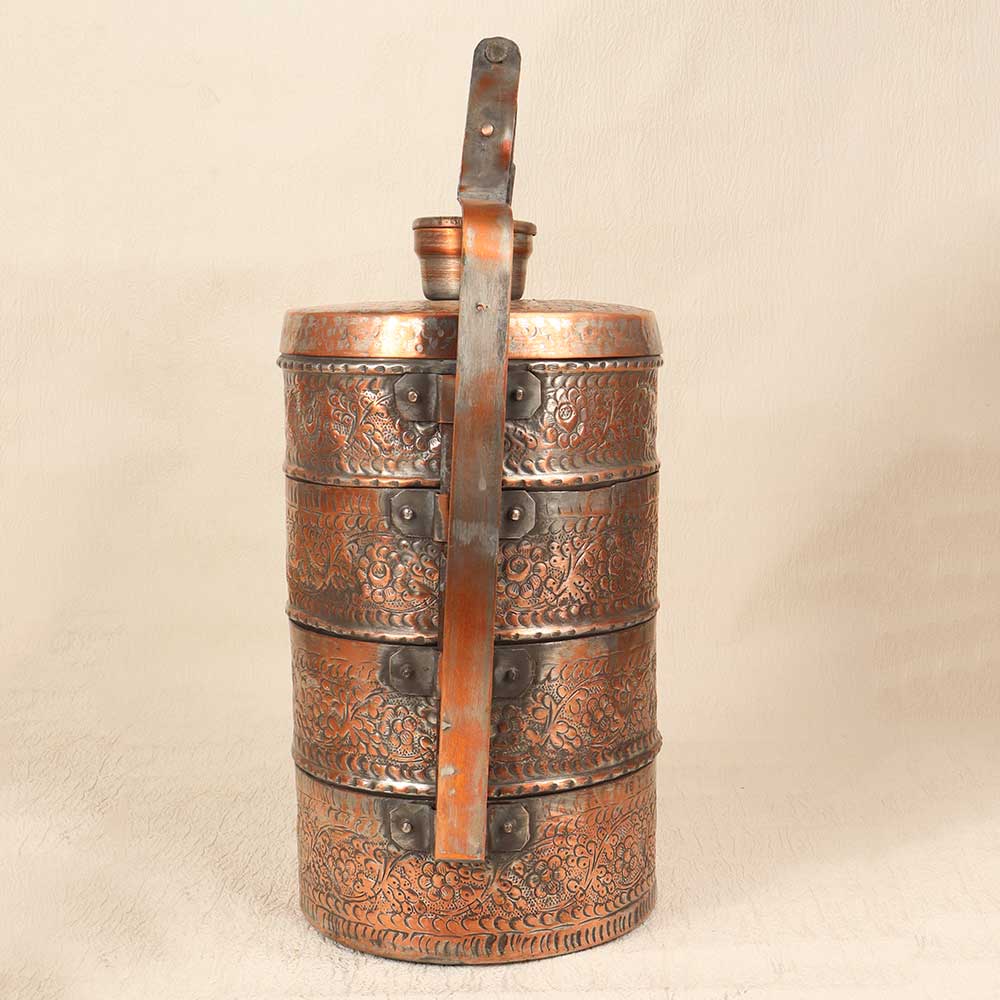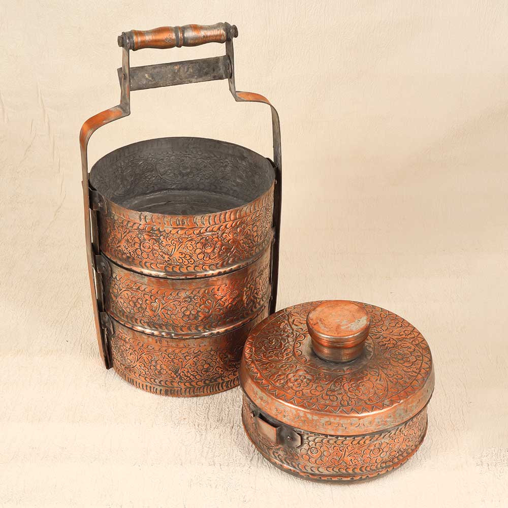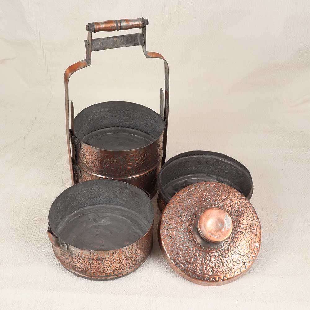 Bring a touch of elegance to your vintage collection with this stunning vintage copper lunch box featuring exquisite Islamic art engravings. With its vintage styling and intricate detailing, this lunch box is sure to impress. This vintage-inspired lunch box will add a special touch of style to your work or school lunches. The engraved Islamic art motifs give this functional item a decorative, artistic flair. Made to last for years of daily use, this heirloom-quality lunch box is perfect for anyone who appreciates Islamic art, wants to represent their cultural heritage, or simply has an eye for beautiful craftsmanship.