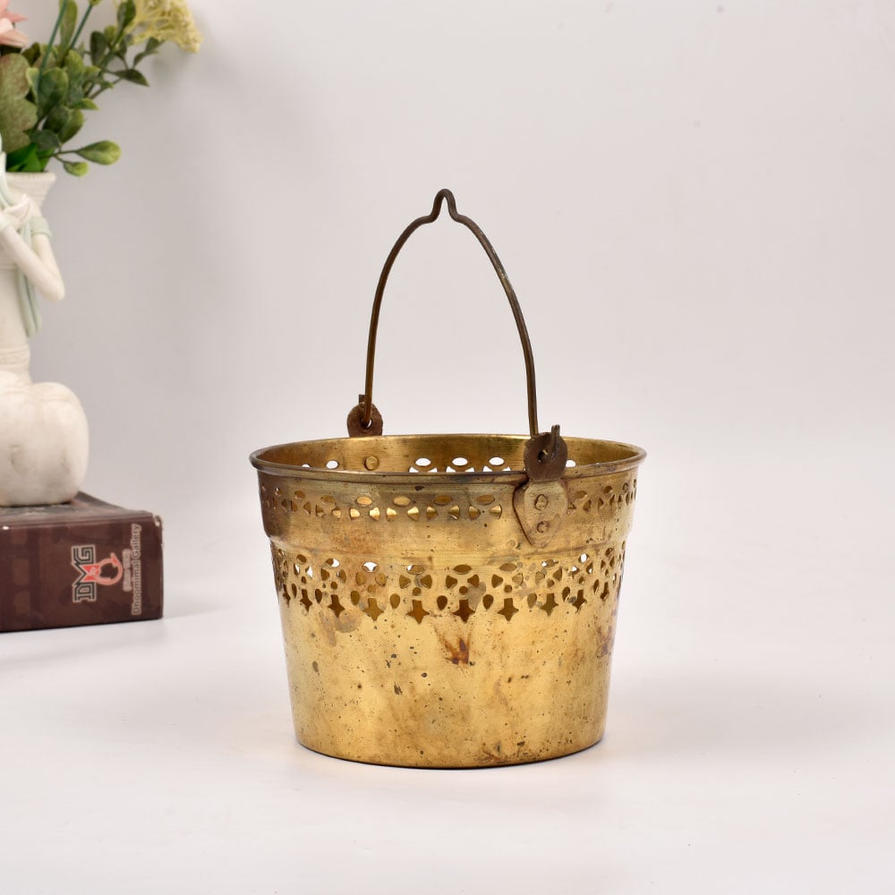 Bring a touch of timeless elegance to your home with our stunning Vintage Brass Flower Bucket. This exquisite piece is a true work of art, crafted with meticulous attention to detail and a passion for preserving the beauty of the past. Elevate your living space with the timeless allure of this brass flower bucket. Imagine the warm glow of your favorite flowers nestled within its gleaming embrace, adding a touch of natural beauty to your surroundings. Whether you choose to display it on a side table, mantel, or entryway, this stunning piece is sure to become a cherished focal point in your home. Designed for the discerning homeowner who values quality craftsmanship and a touch of vintage charm, our Vintage Brass Flower Bucket is the perfect way to bring a sense of timeless elegance to your space. Invest in a piece that will captivate your guests and become a cherished heirloom for years to come.