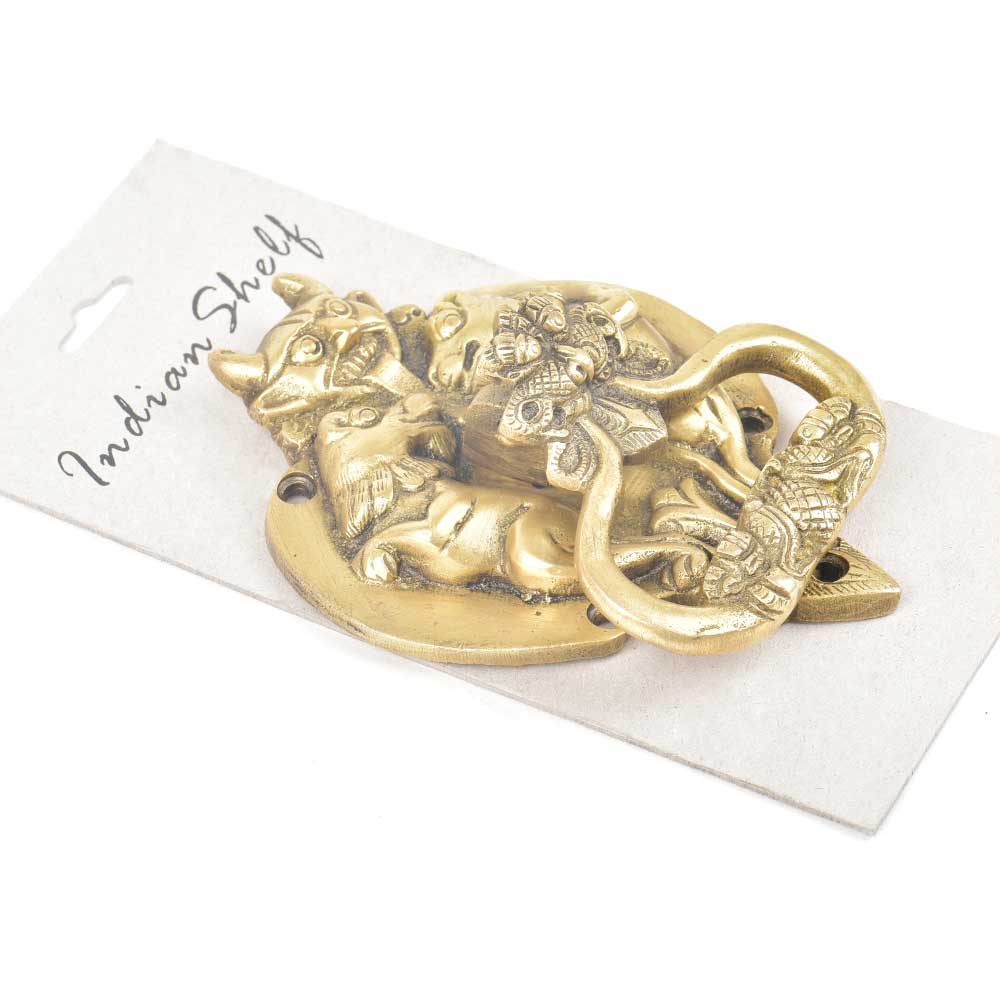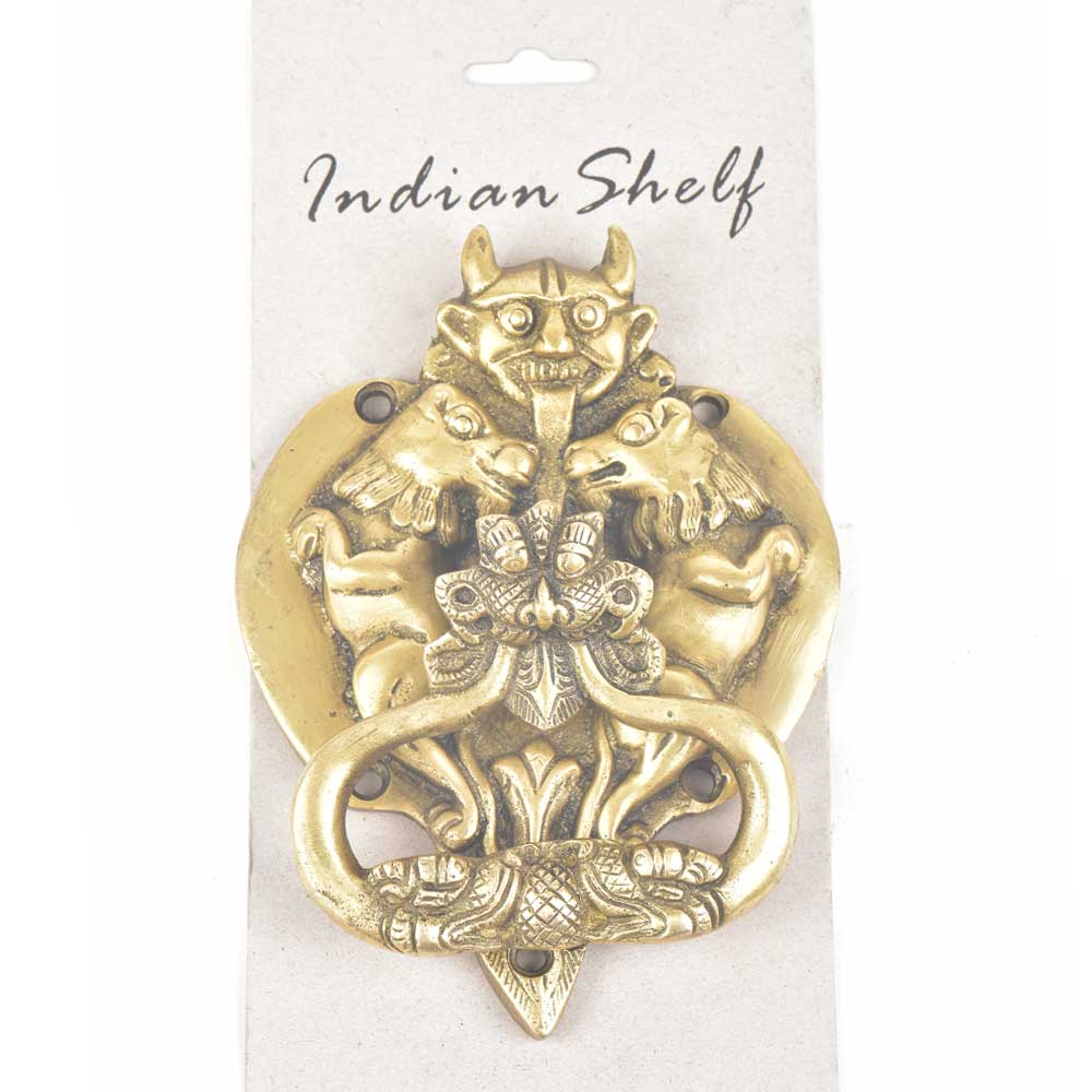 High quality brass door knocker has two lovely engraved dragon face along with a heavy knocker attached to the face. Made by expert artisans who are masters of their trad to produce such a masterpiece that is so unique and extraordinary in its design and function. It adds a decorative element to your main door and is also an excellent gifting option.