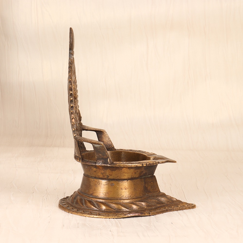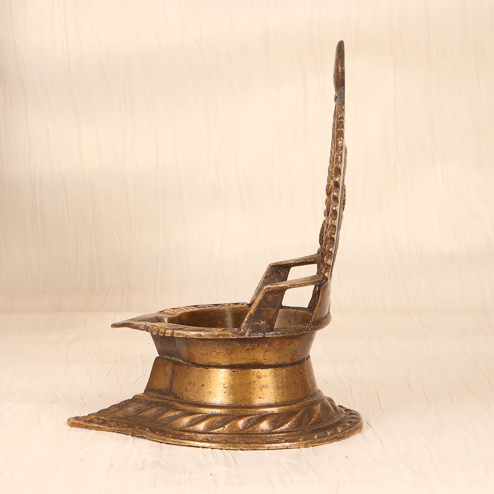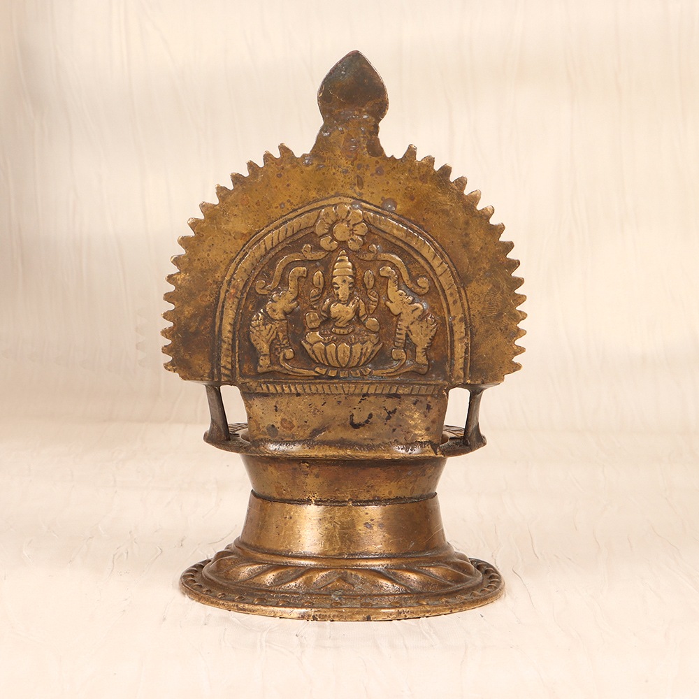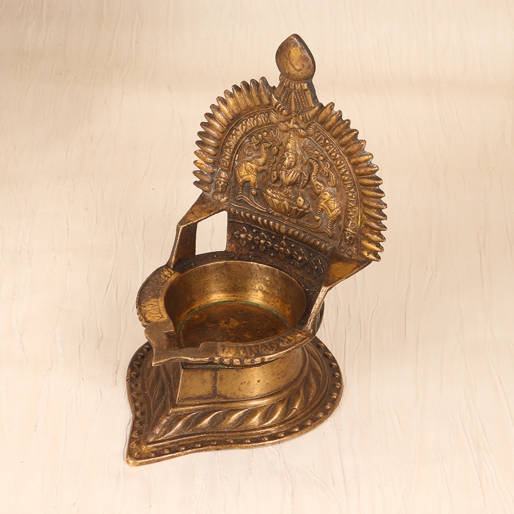 Elevate your space with the captivating glow of the Vintage Brass Gajlaxmi Oil Lamp. This stunning piece, crafted in the timeless tradition of South Indian art, casts a warm, enchanting light that will transport you to another era. The Gajlaxmi Oil Lamp is more than just a source of light - it's a work of art that will elevate the ambiance of any space. The ornate brass casting features detailed lotus motifs and other traditional South Indian designs, creating a mesmerizing visual centerpiece. As the flame dances within, it casts a soft, golden glow that evokes a sense of timeless elegance. Whether placed on a mantel, side table, or shelf, this lamp will instantly transform the mood of a room. Its compact size makes it perfect for small spaces, while its impressive stature commands attention in larger rooms. Infuse your home with the beauty and tranquility of South Indian artistry with the Vintage Brass Gajlaxmi Oil Lamp.