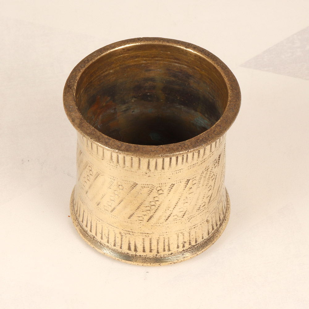 Immerse yourself in the captivating allure of our vintage brass Panchpatra pot, a masterpiece of South Indian art that will transform your sacred rituals into a truly transcendent experience. Crafted with meticulous attention to detail, this exquisite vessel embodies the rich cultural heritage of the region, seamlessly blending timeless tradition with modern sophistication. Elevate your spiritual practice with the captivating presence of this Panchpatra pot. Its elegant form and timeless elegance will imbue your rituals with a sense of reverence and connection to the divine. Whether you're a devout practitioner or seeking to infuse your home with cultural richness, this exceptional piece will become a cherished centerpiece for years to come.