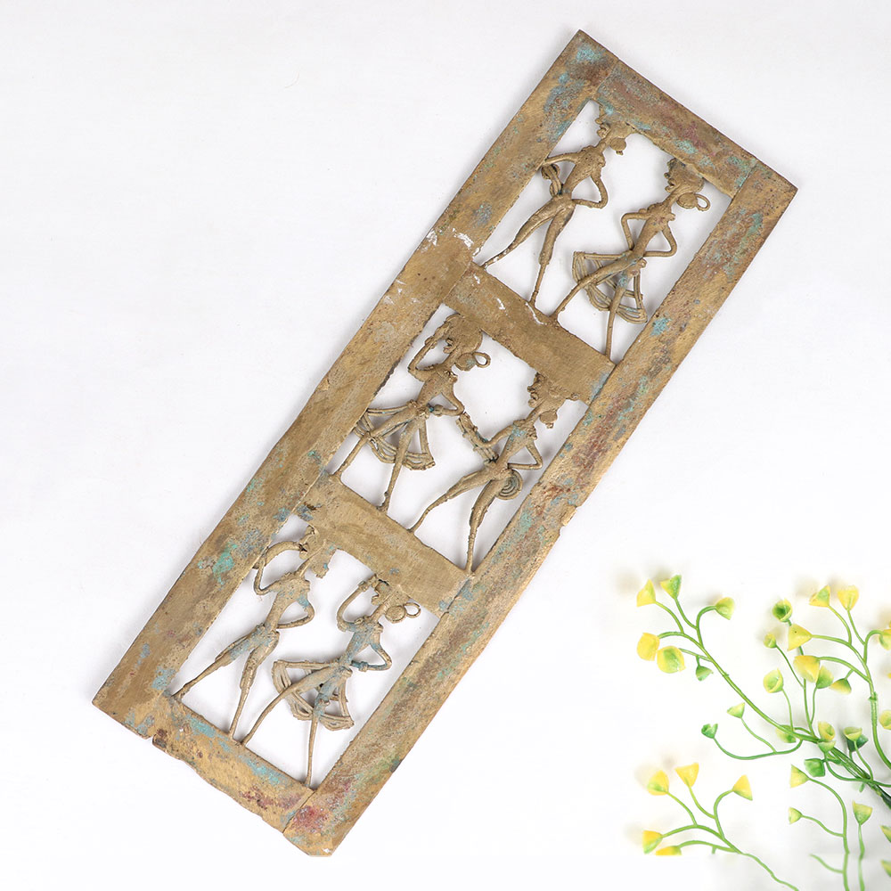 Buy a Vintage Brass Tribal Wall Art featuring intricate Jali work and get a hassle free delivery right at your doorstep. Crafted by skilled talented artisans, this masterpiece showcases six finely detailed figures engaged in the timeless joy of playing musical instruments. The antique brown finish adds a warm, rustic allure to the piece, enhancing its vintage charm. Handmade with precision and passion, the wall art epitomizes the ancient artistry of Tribal Art, sculpted from high-quality brass. Its versatility allows it to grace various settings, from the welcoming ambiance of your home to the professional allure of an office, the intimate atmosphere of a restaurant, or the sophisticated charm of a hotel or cafe. Elevate your interior decor with this unique creation, effortlessly blending tradition with contemporary aesthetics. This exquisite piece serves as an exceptional addition to any vintage collection, infusing spaces with a distinctive character and cultural resonance. Beyond personal indulgence, it makes for a thoughtful and cherished gift, ideal for presenting to your loved ones on special, festive, or auspicious occasions.