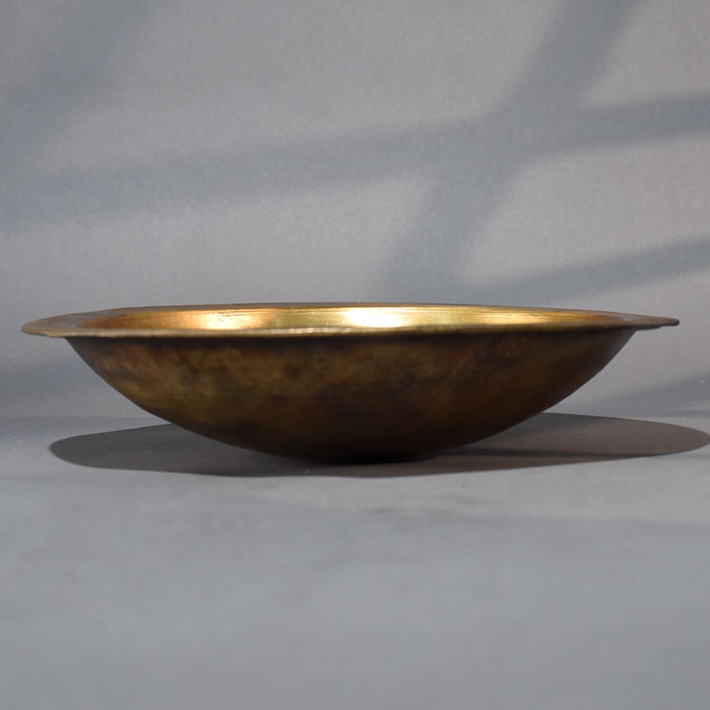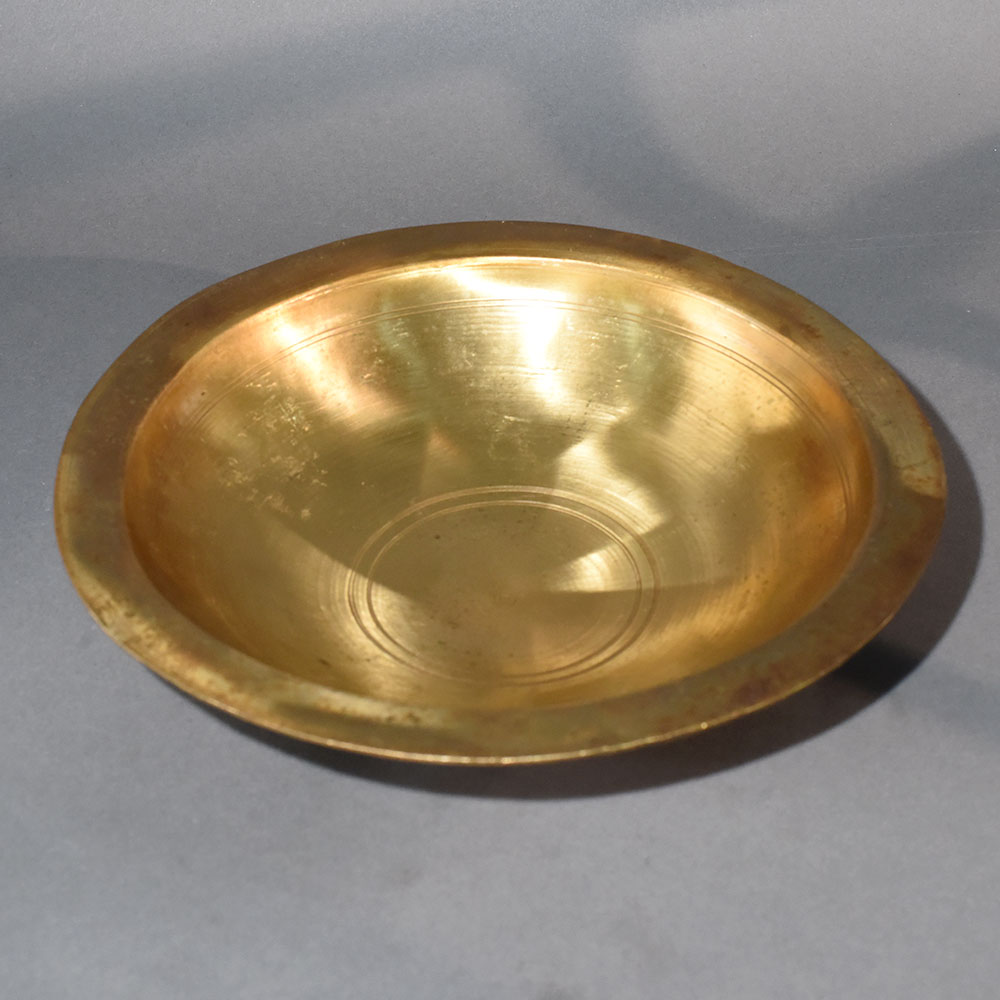 This handcrafted vintage brass bowl inspired by Himalayan temple traditions is a quiet yet powerful ritual object. Created for devotional use, it was traditionally filled with water, flowers, or milk during prayer and deity bathing ceremonies. The bowls wide rim and deep interior allow for effortless handling during rituals. Its surface displays a gentle patina developed through time, adding warmth and character. These natural signs of age enhance its authenticity and spiritual appeal. Traditionally used in sacred settings, it now serves as both a ritual vessel and a decor element. Placed in a meditation space, altar, or entryway, it brings a sense of calm and reverence. As a flower decoration bowl, it works beautifully during festivals or daily worship rituals. This Himalayan brass bowl embodies simplicity, devotion, and timeless craftsmanship.