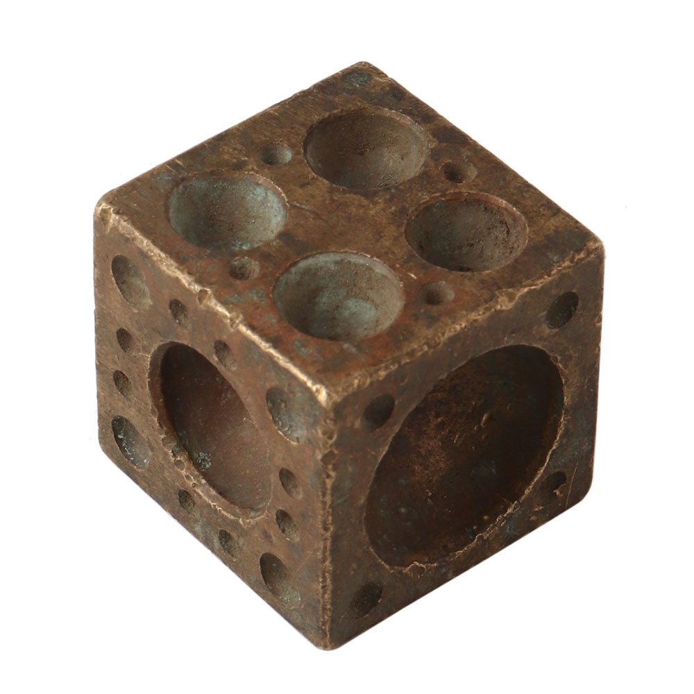 A solid brass cube dice sculpture paper weight is a shelf decor item that can be used to hold down papers or other small items. It is typically made of solid brass and is shaped like a cube, resembling a dice. The small decorative item may feature intricate designs and can be polished to a shiny finish. It is a great desk accessory for any office, home or study for modern home decor. It can also be used as a paperweight for books, photo albums, or other items that need to be kept in place. It is a durable and long-lasting item that can be passed down from generation to generation. This sculpture paper weight is also a great gift for anyone who loves to play games or is into crafts. It can be found in various sizes and designs.