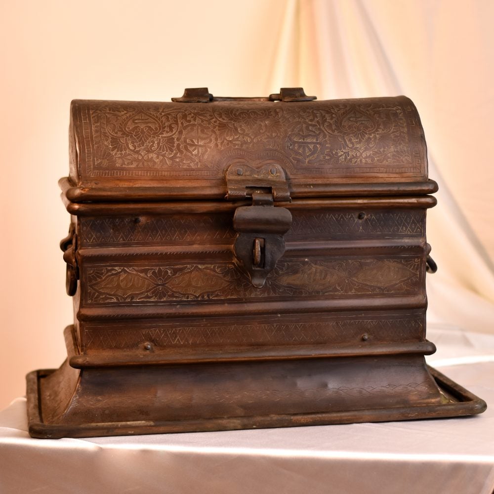 Vintage Hyderabadi Jewelry Box. The Box is One of Its Kind. This Box is the Craftsmanship of 1930'S. Very Fine Engraving and Jali Work are the Characteristics of Such Boxes