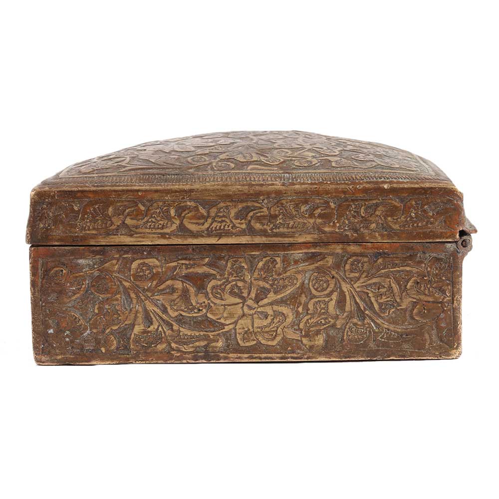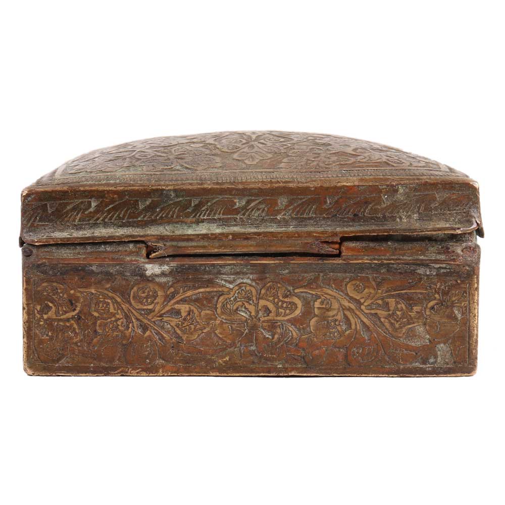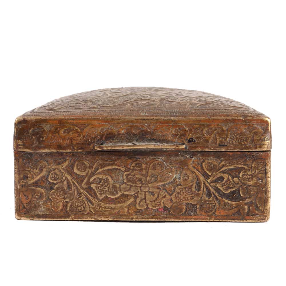 • Vintage Indo Persian Chased Square Brass Trinket Box