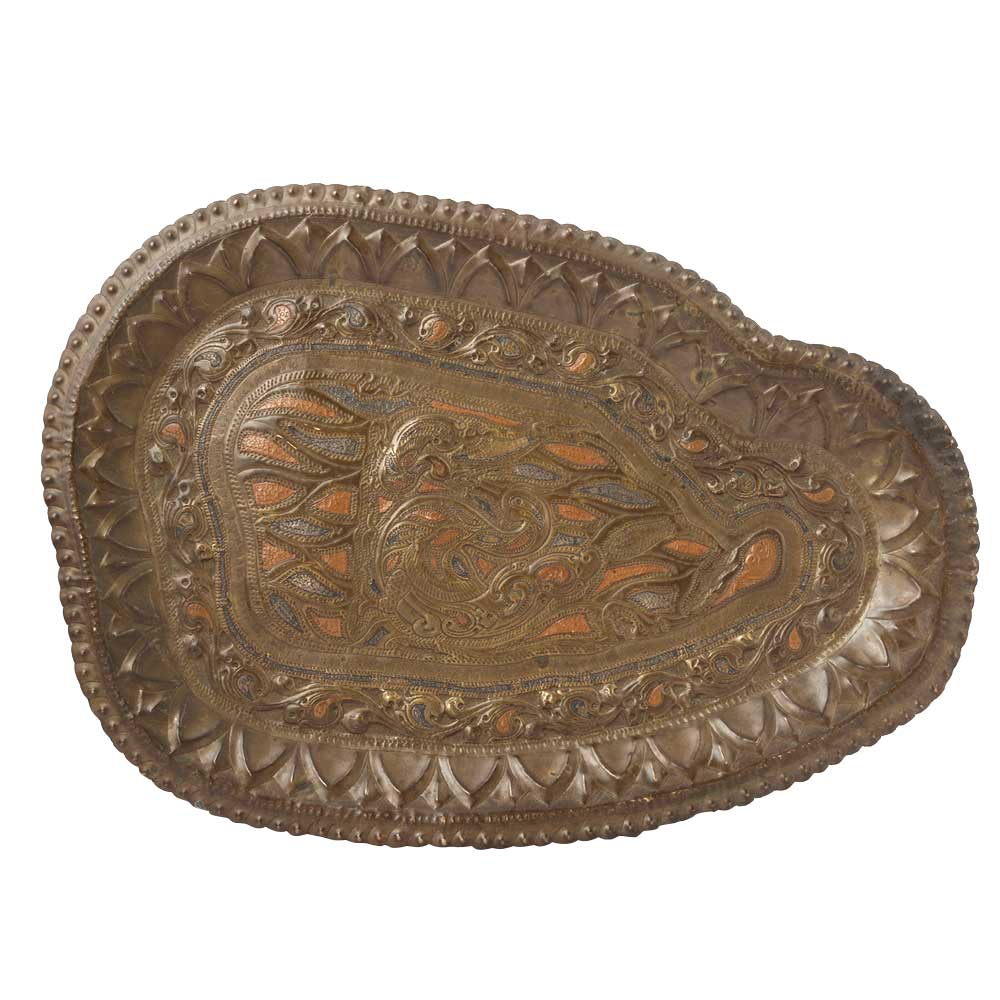 Vintage Hindu Brass Serving Platter Tray Indian Hammer Beaten Engraved Vintage Brass Tray Great for Adding That Vintage Look to Your Decoration. This Tray is Meant for Decor.