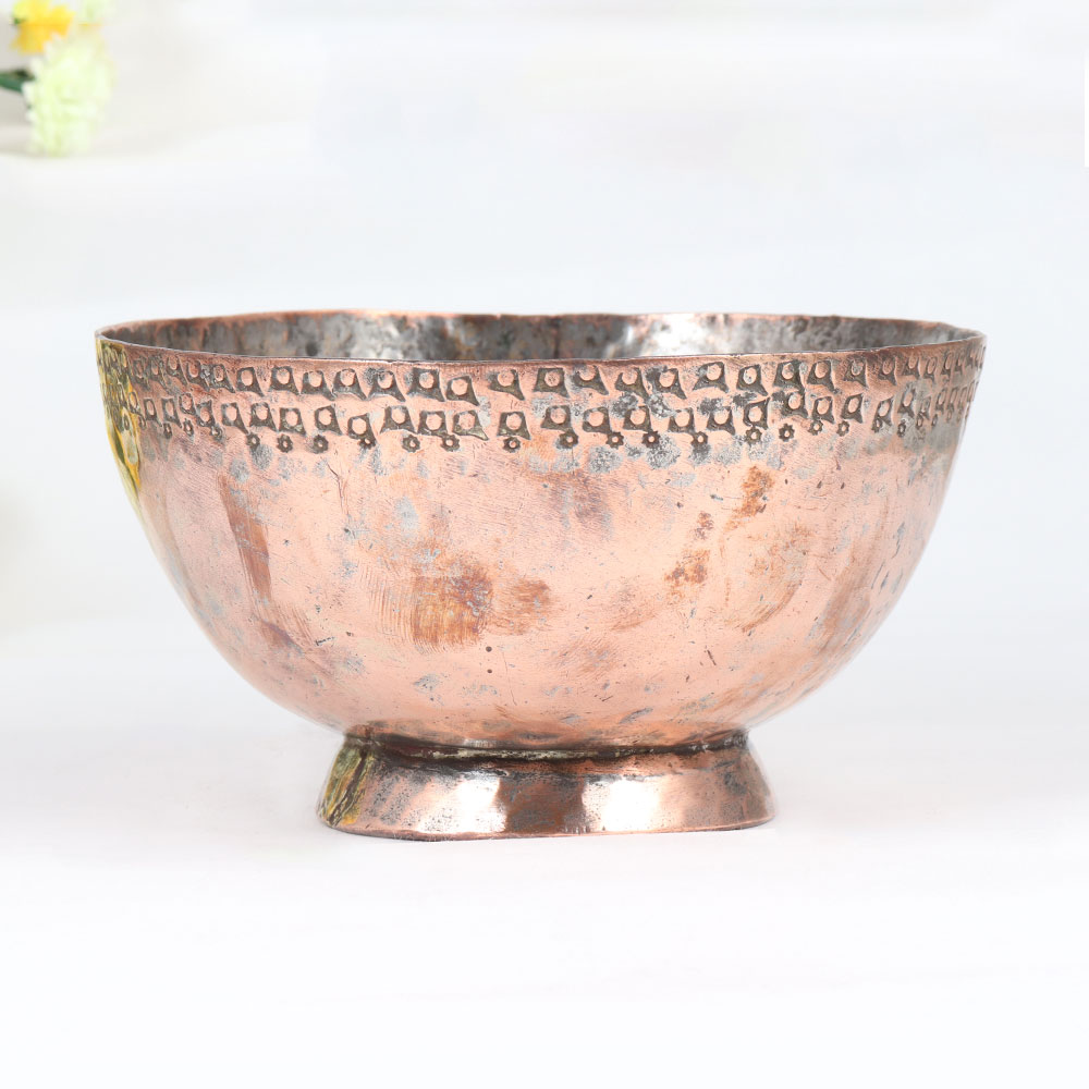 Immerse yourself in the allure of bygone eras with our exquisite Vintage Copper Bowl that is a testament to the rich traditions of Islamic Art. Meticulously handcrafted by highly skilled artisans, this timeless piece boasts unparalleled craftsmanship, showcasing intricate engravings that tell a tale of artistry and cultural heritage. The antique brown finish imparts an air of antiquity, adding character and warmth to any space. Crafted from high-quality copper, this bowl transcends its decorative purpose, offering versatility that extends beyond conventional ornamentation. Elevate your living space, office, restaurant, hotel, or cafe with its magnetic presence, or transform it into a distinctive indoor flower pot for a touch of natural beauty. A coveted addition to any vintage collection, this Copper Bowl captures the essence of a bygone era, making it an ideal gift for your loved ones on special, festive, or auspicious occasions.