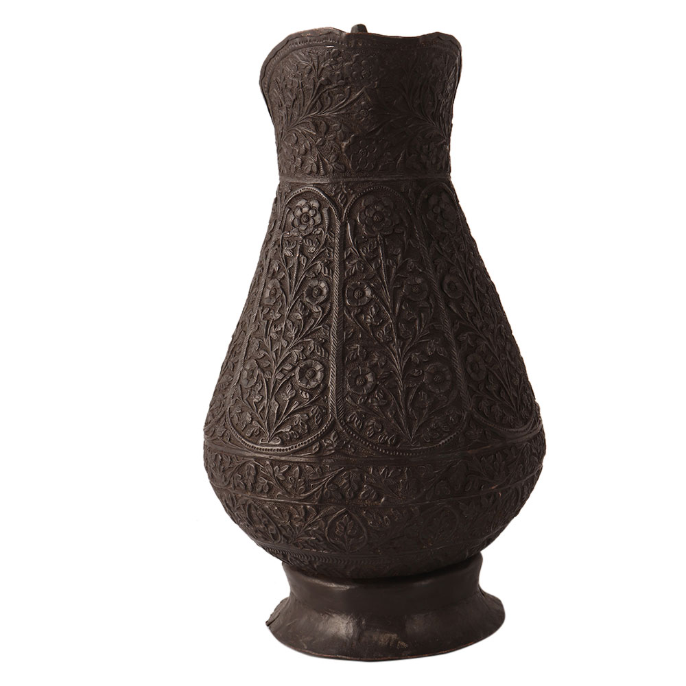 A beautiful Islamic water jug with vintage style engraving. It is made of copper and has a handle to hold it. An ideal item for your collection that will catch the eye of every visitor to your home or office.