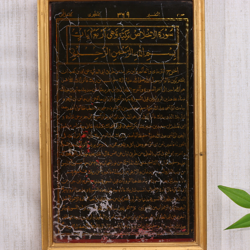 Delicately preserved in a wooden frame, this vintage glass negative captures the ethereal beauty of Islamic calligraphy prayers. Crafted with meticulous attention to detail, this one-of-a-kind piece transports you to a bygone era, where the written word was elevated to an art form. Lose yourself in the mesmerizing flow of the calligraphic strokes, each one a testament to the skill and artistry of the original craftsman. This vintage glass negative is more than just a piece of wall decor - it's a window into a world of profound spiritual expression and cultural tradition. Display it proudly in your home or office, and let it inspire you with its timeless beauty and meaningful message. Whether you're a collector of vintage art, a lover of Islamic culture, or simply someone who appreciates the power of the written word, this stunning glass negative is a must-have addition to your collection. Secure your piece of history today and unlock the captivating allure of this truly remarkable work of art.