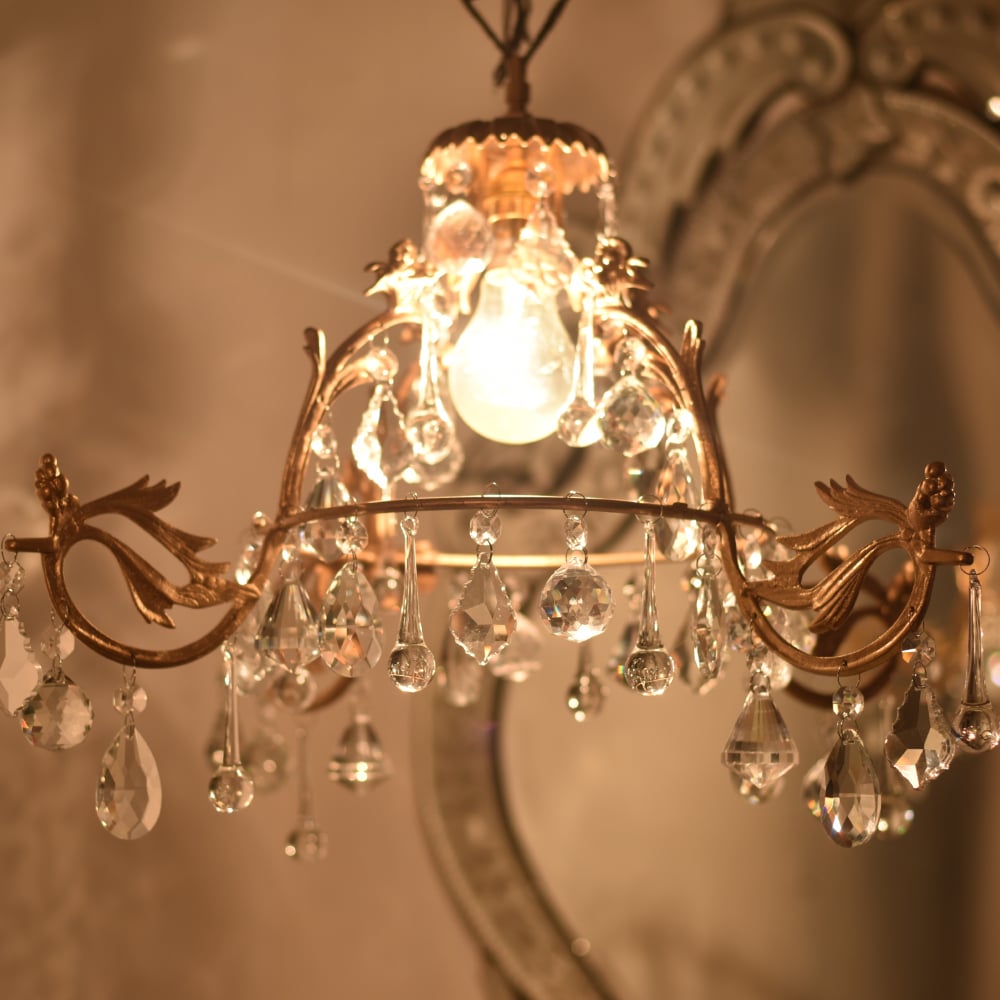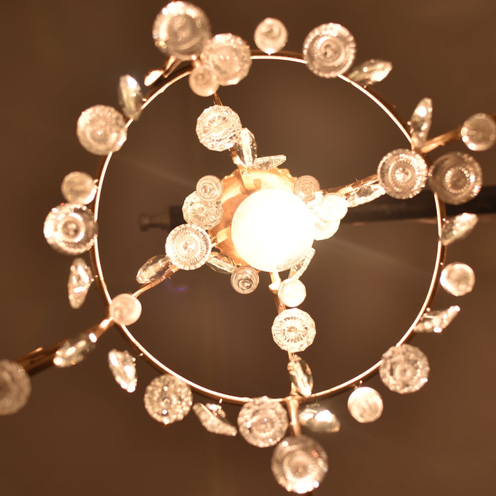 Suspended from the chandelier are beautifully cut crystal drops that sparkle and shine, reflecting light with every movement. These crystals catch the eye and create dazzling light patterns on the walls and ceiling, transforming your room into a radiant and inviting space. The crystal accents elevate the overall opulence of the chandelier, adding a luxurious touch.