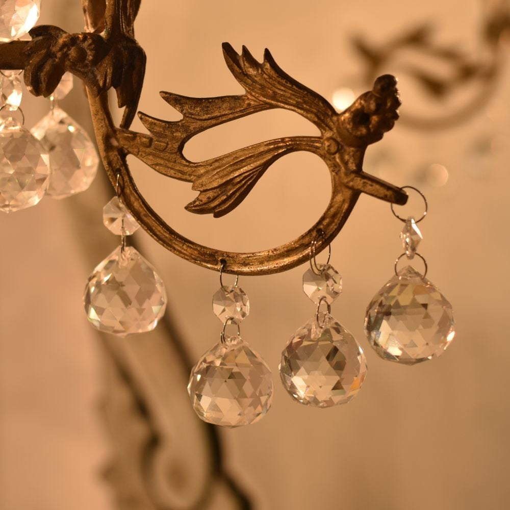 While the chandelier is inspired by vintage Italian design, its octagonal crystal drops give it a modern twist. This fusion of classic and contemporary elements makes the chandelier versatile enough to complement a wide range of home styles, from traditional to eclectic to modern. The combination of the antique brass finish and shimmering crystals makes it a timeless piece that suits various interior aesthetics.
