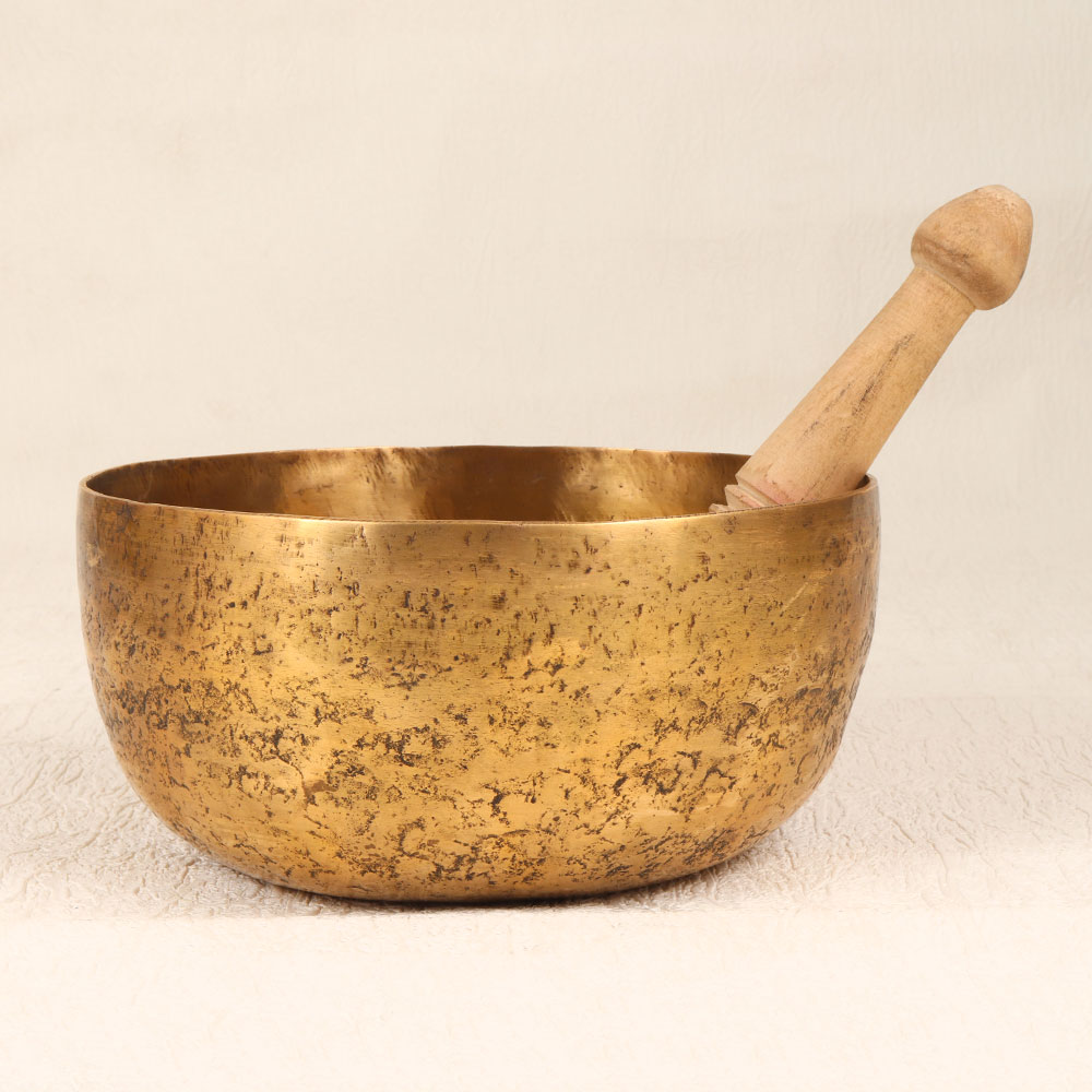 Let the soothing tones wash over you and transport you to a state of deep relaxation with this vintage bell metal meditation singing bowl. Crafted by skilled artisans in the Himalayan region using traditional techniques, this singing bowl produces rich, resonant tones perfect for meditation, yoga, and more. Allow your mind to unwind as you run the mallet around the rim of this bell metal singing bowl. The pure, sustained tones help quiet mental chatter, relieve stress, and center your awareness in the present moment. Sinking into a meditative state becomes effortless when surrounded by peaceful reverberations. With regular use, this singing bowl promotes inner harmony, improved focus, and a sense of spiritual well-being. Gift it to yourself or a loved one as a meaningful way to enhance mindfulness. Bring the serenity of ancient Tibetan rituals into your daily life with this authentic vintage singing bowl. The soothing hum of the ringing metal soothes the soul, washes away worries, and transports you to a sanctuary of stillness within. Let go of tension and anxiety as you get lost in the hypnotic tones. This is a wonderful tool for achieving a deeper meditative state before sleep, first thing in the morning, or anytime you need to push a pause on a hectic day. Give your mind the gift of quiet calm with this gorgeous bell metal singing bowl.