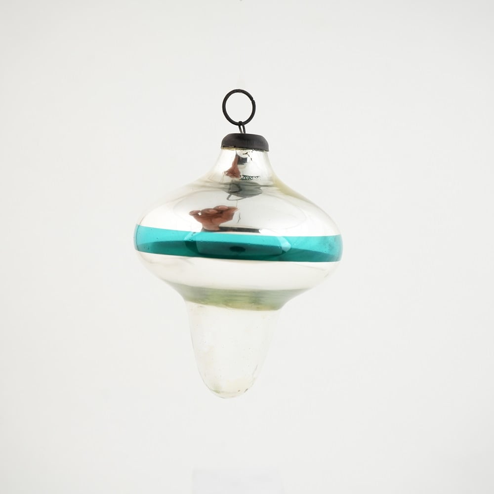 • Vintage Mercury Silver and Turquoise Glass Hanging Ornament
