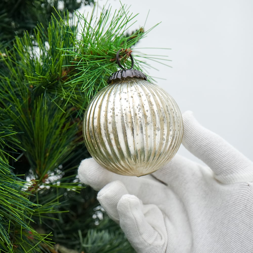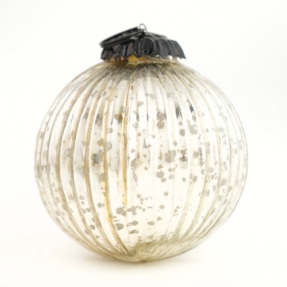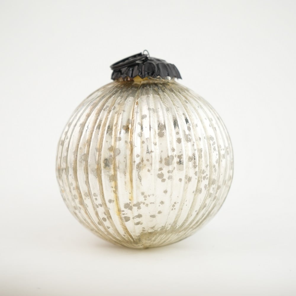 Vintage Mercury Silver Glass Hanging Ornament. Crafted from high-quality glass with a smooth glossy finish, this decorative bauble adds a classic and festive touch to Christmas trees, wreaths, and holiday displays.
