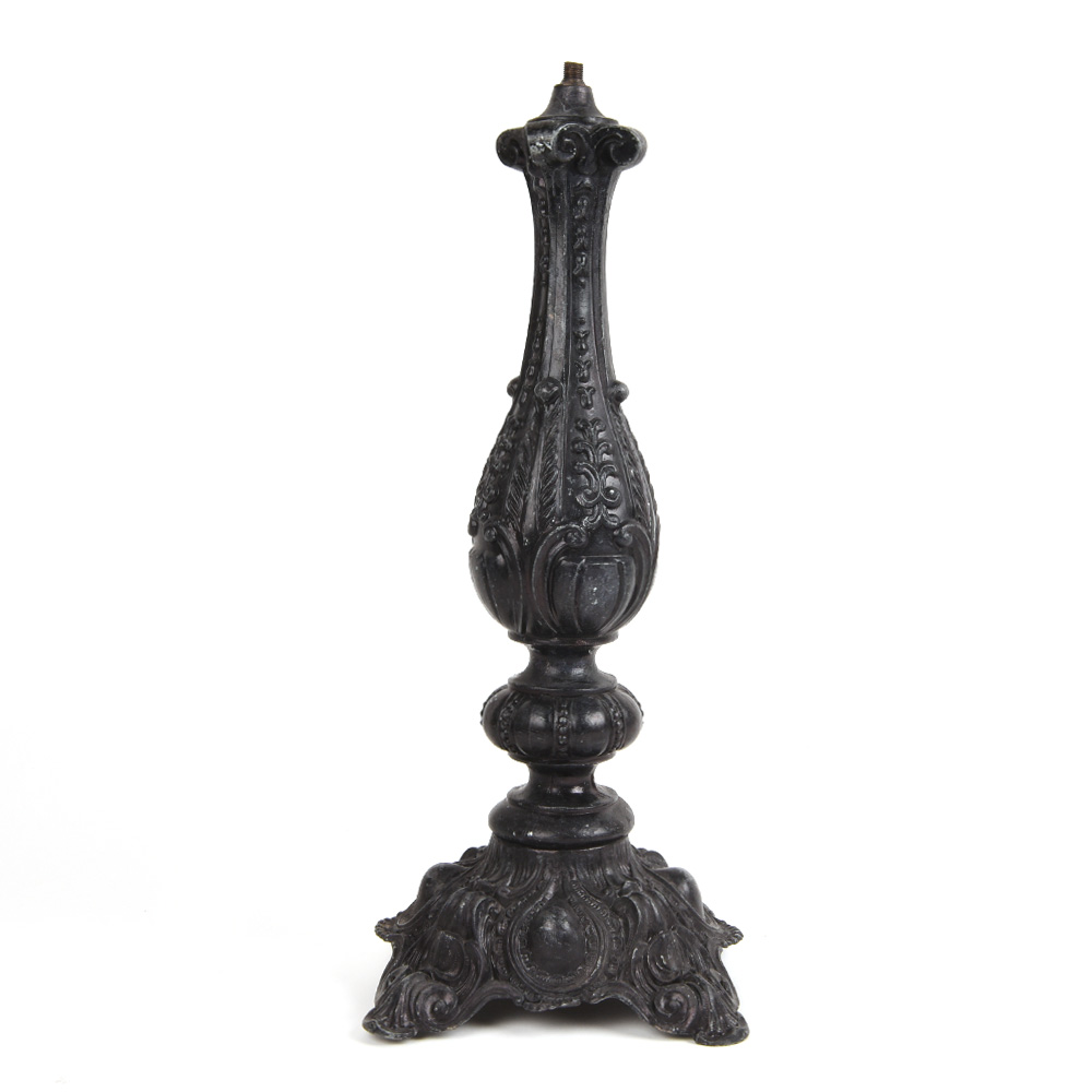 Vintage lamps stand with wonderful work of flowers and leaves in the sculpture. The lamp is unique and allows a great lighting option for any room.