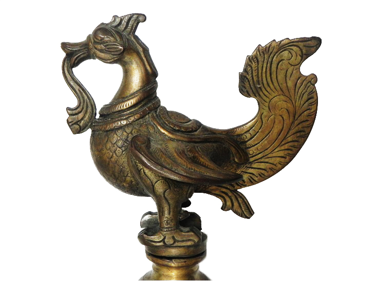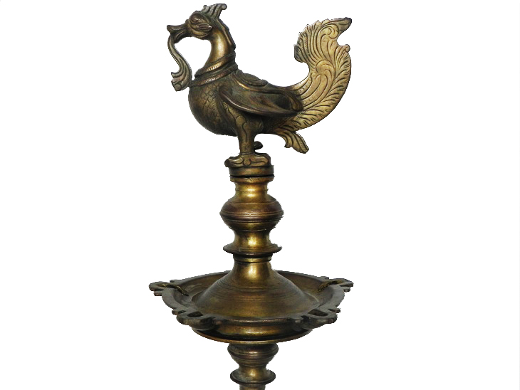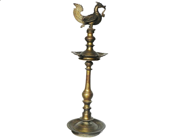 This Beautifully Shaped Vintage Oil Diya is Known as Peacock Oil Lamp(Peacock Diya). This Can Be Observed by the Design, the Symbols and the Figures Sculptured on This Lamp. It Adds Spiritual Flavor to Your Decor.