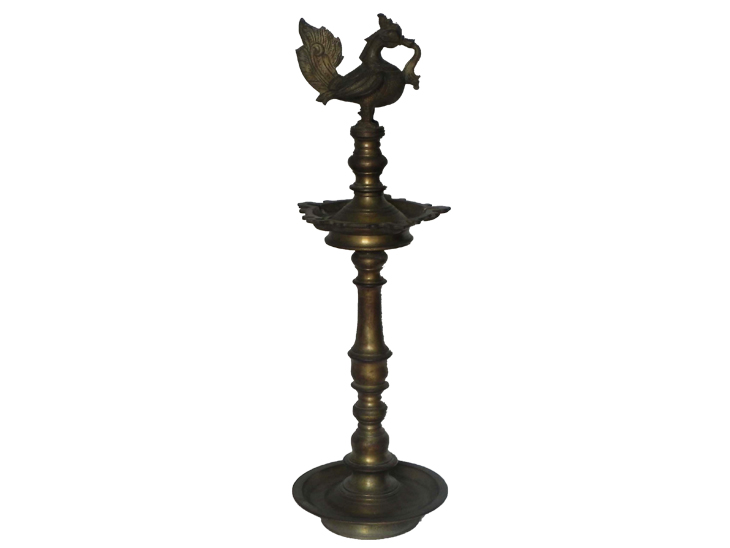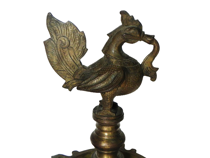 This Beautifully Shaped Vintage Oil Diya is Known as Peacock Oil Lamp(Peacock Diya). This Can Be Observed by the Design, the Symbols and the Figures Sculptured on This Lamp. It Adds Spiritual Flavor to Your Decor.
