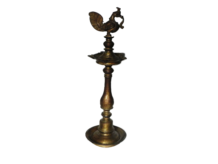 This Beautifully Shaped Vintage Oil Diya is Known as Peacock Oil Lamp(Peacock Diya). This Can Be Observed by the Design, the Symbols and the Figures Sculptured on This Lamp. It Adds Spiritual Flavor to You Decor.