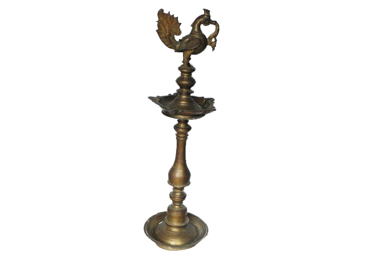 This Beautifully Shaped Vintage Oil Diya is Known as Peacock Oil Lamp(Peacock Diya). This Can Be Observed by the Design, the Symbols and the Figures Sculptured on This Lamp. It Adds Spiritual Flavor to You Decor. Vegetable Oil, Mustard Oil or Desi Ghee can be Use to Light the Lamp with Cotton Wicks.