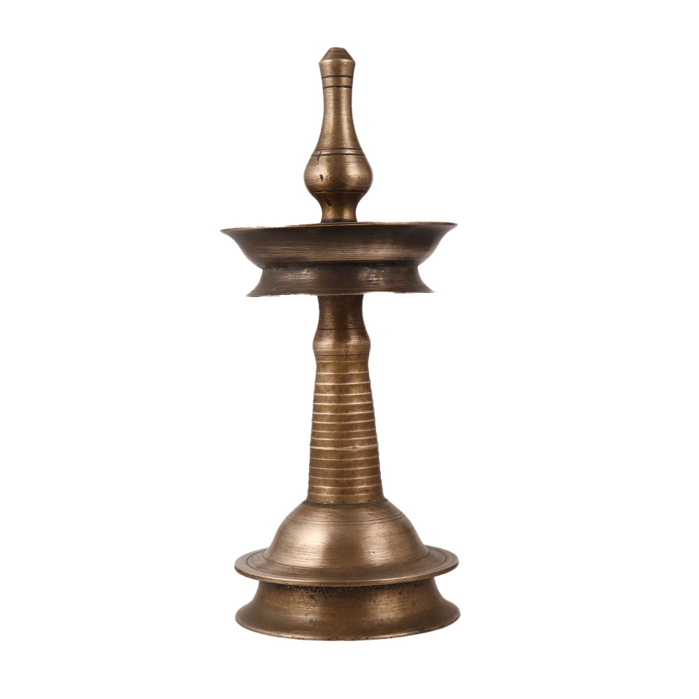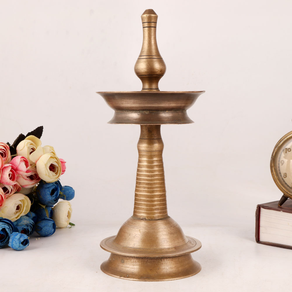 Indulge in the beauty of traditional Indian craftsmanship with this stunning brass oil lamp, lovingly handcrafted by skilled artisans in South India. Its lustrous matte finish catches the light, casting a warm glow that adds a sense of serenity to your pooja or ritual space. This lamp is not only a functional item for temples and special occasions, but also a statement piece that can be proudly displayed as a vintage collection or a unique decoration in your home. Its antique finish and fine details are a testament to the artistry of South Indian artisans, making it a valuable piece of cultural heritage. Share the joy of this exquisite brass oil lamp with your loved ones as a meaningful gift that carries the blessings of tradition and craftsmanship.