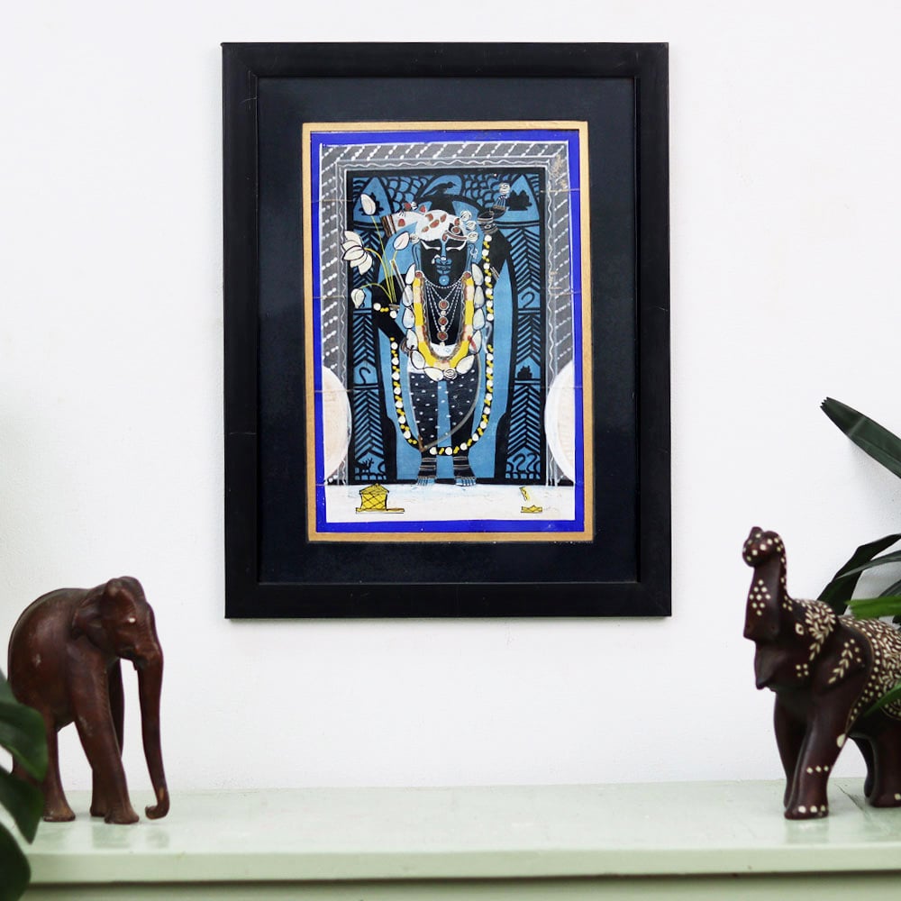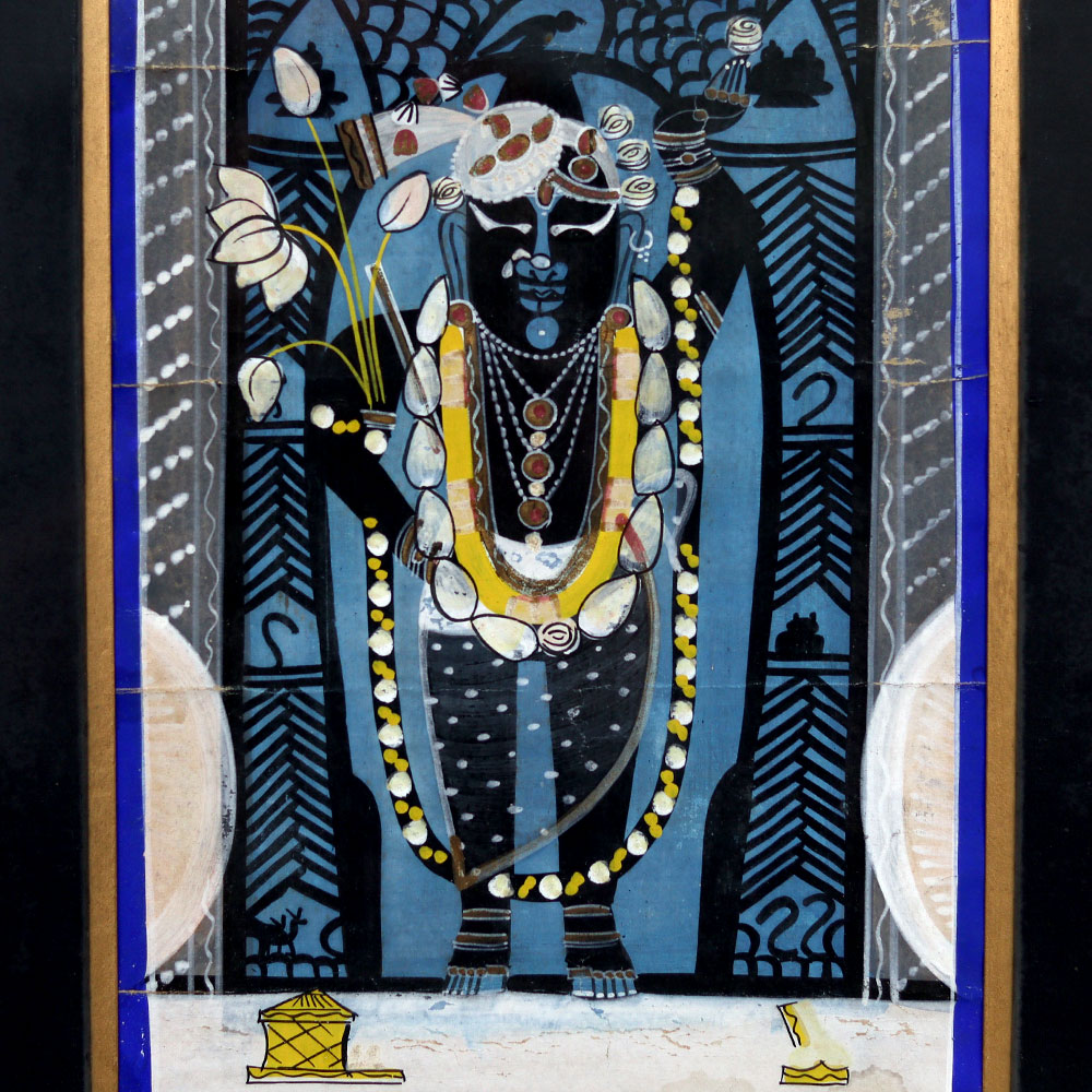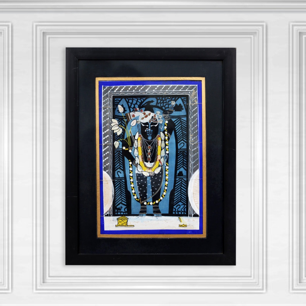 Step into a world of divine splendor with this breathtaking Vintage Lord Krishna painting. Masterfully created by skilled artisans in the renowned Nathdwara region, this painting captures the essence of the beloved deity in all his resplendent glory. The vibrant hues and intricate details will transport you to a realm of spiritual wonder, infusing your space with a sense of timeless beauty and sacred energy. Whether you're a devotee of Lord Krishna or simply appreciate fine art, this stunning painting is a must-have addition to your collection. Printed on high-quality, archival paper, this painting is built to last, ensuring that its beauty and significance will be preserved for generations to come.