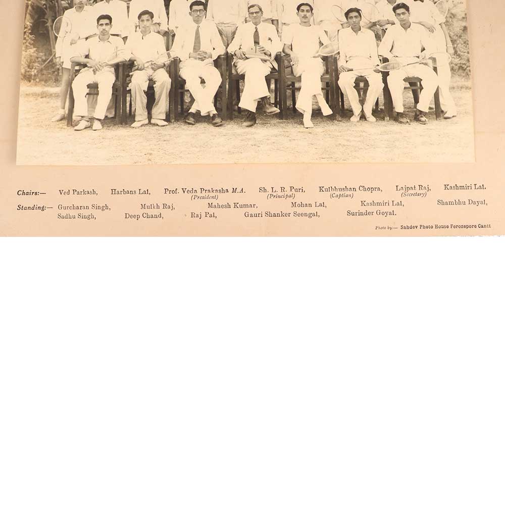 Bring history to life with this stunning vintage paper photograph of the Badminton Club from Government College in Muktsar, India. Captured in 1952-53 in crisp black and white, this photo offers a rare glimpse into the past and transports you back to a simpler time. This mesmerizing photo captures a Badminton Club team photo from Government College in Muktsar, India in 1952-53. Their youthful faces are filled with camaraderie and competitive spirit. For any history buff, this photograph is sure to delight. Ideal for history lovers, this vintage photograph will accent any room. Display it proudly and let the stories come alive each time someone notices the charming details that transport them back in time. Bring home a historical treasure and cherished memory today!