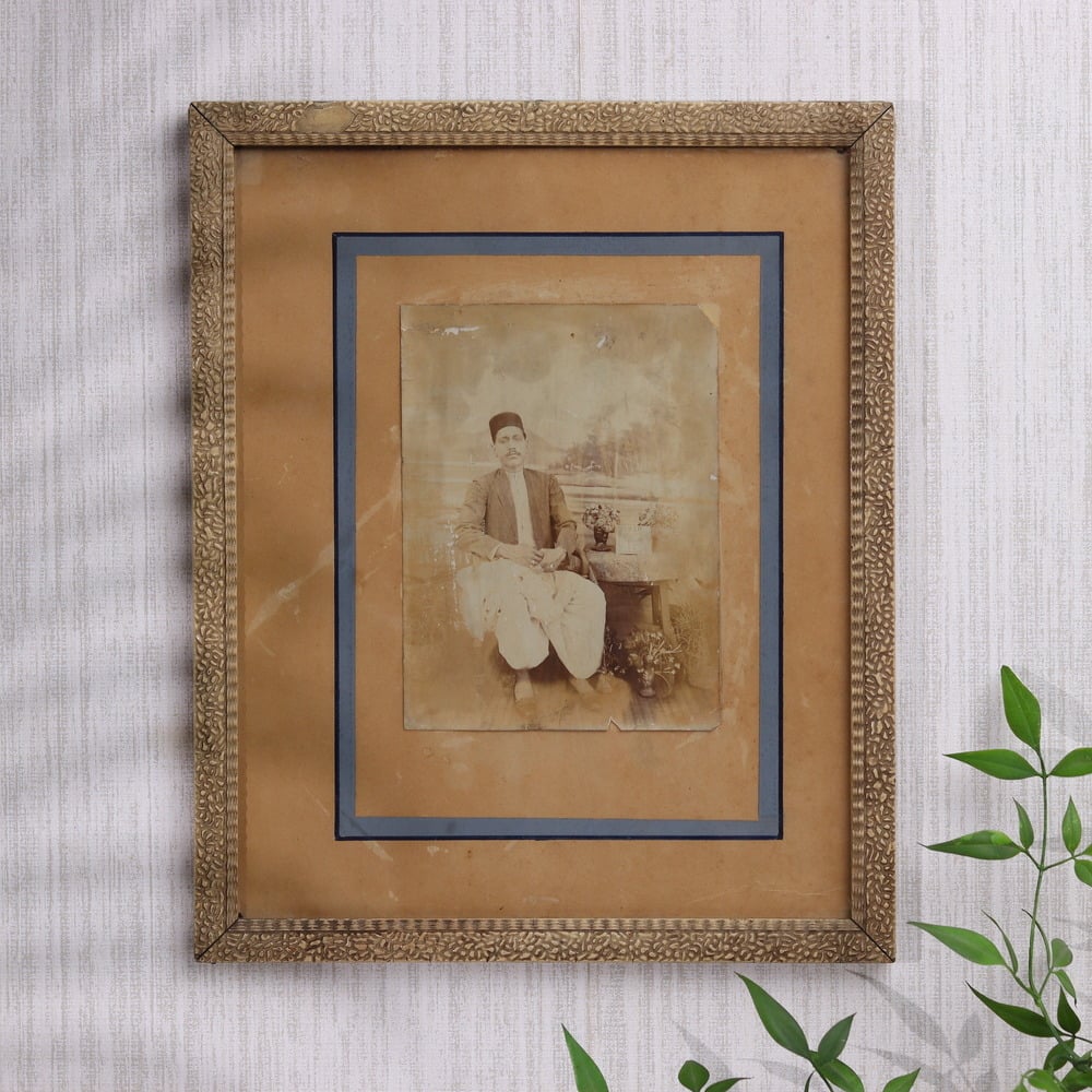 Gaze into the eyes of a man from a bygone era and let his story unfold before you. This stunning vintage photograph, encased in a rustic wooden frame, transports you back in time, inviting you to uncover the mysteries hidden within. This vintage photograph is more than just a picture - it's a window into history. Imagine the stories this man could tell, the lives he's witnessed, the moments he's experienced. By displaying this stunning piece in your home, you'll spark curiosity and wonder in all who see it. Ignite your passion for the past and let this photograph become a cherished heirloom that you'll treasure for years to come. Whether you're a history buff, an art enthusiast, or simply someone who appreciates the beauty of the past, this vintage photograph is a must-have addition to your collection. Elevate your decor and captivate your guests with this one-of-a-kind piece that celebrates the timeless elegance of a bygone era.