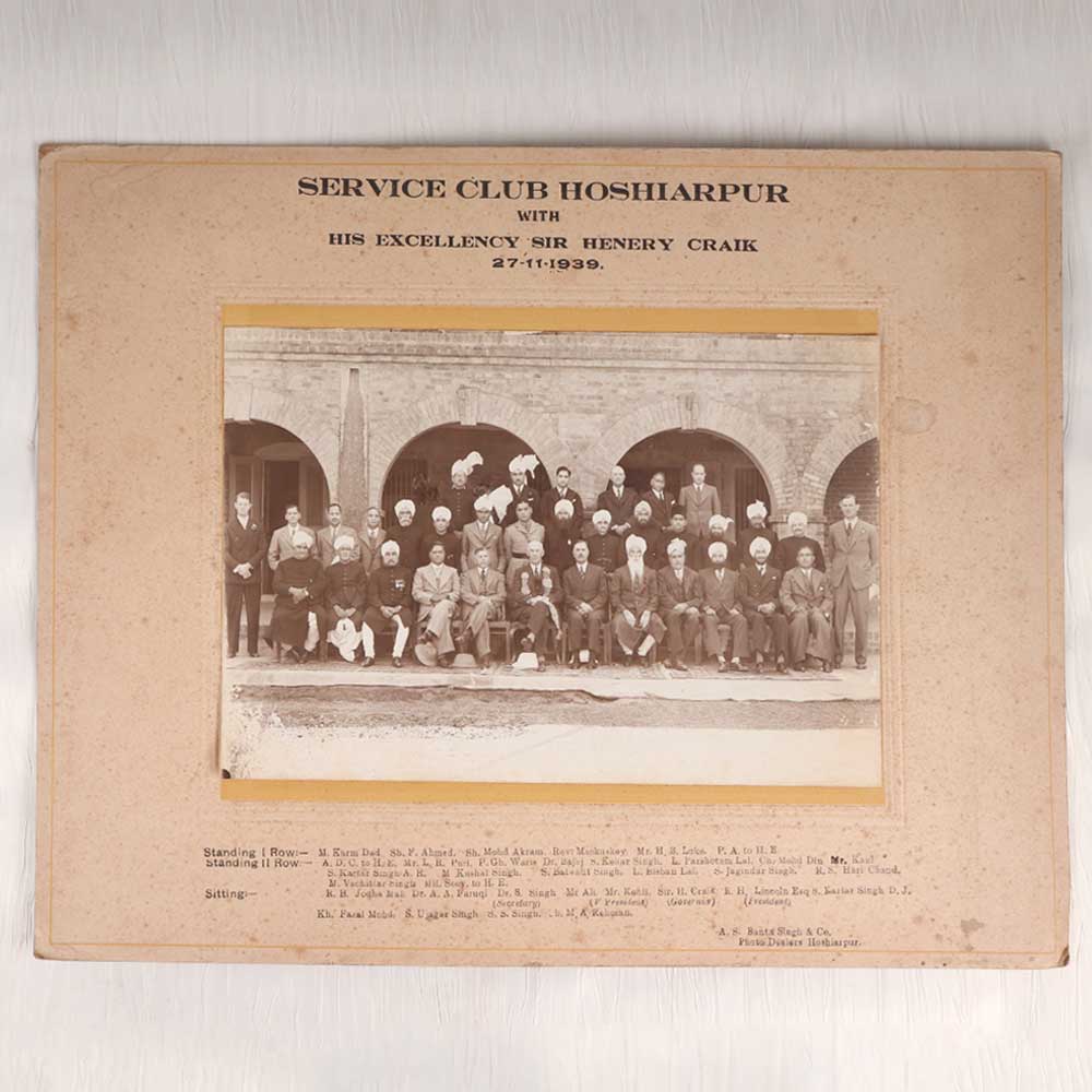 - Depicts His Excellency Sir Henry Craik, a British colonial administrator, with members of the Service Club Hoshiarpur