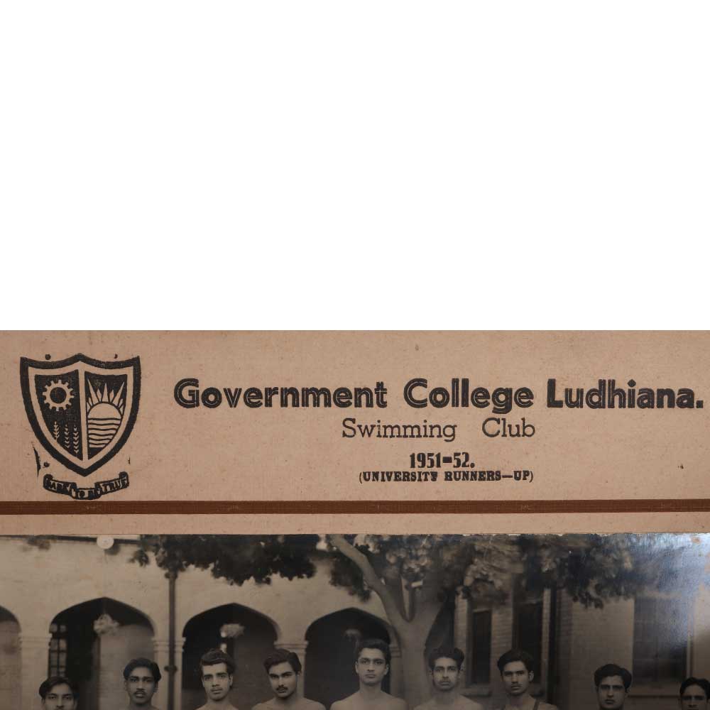 - "Government College Ludhiana" and "Swimming Club" text provides context