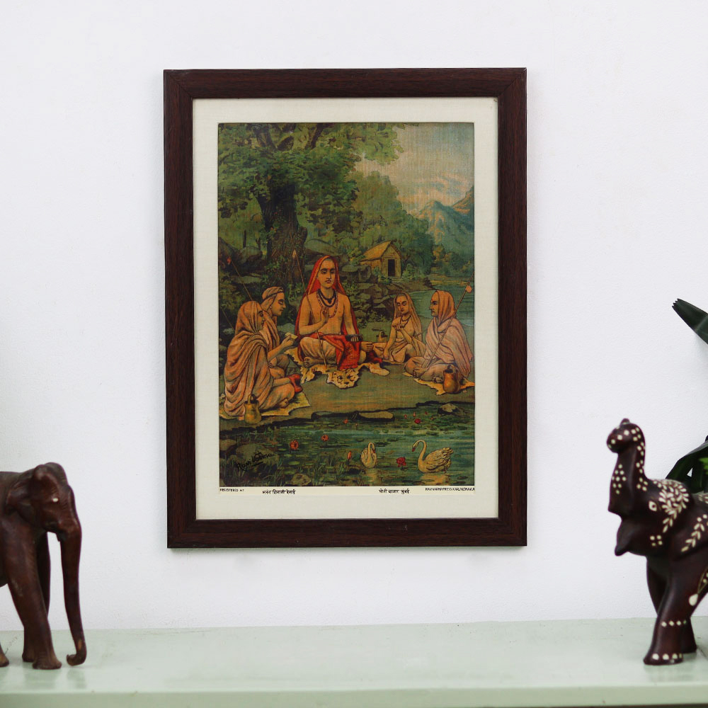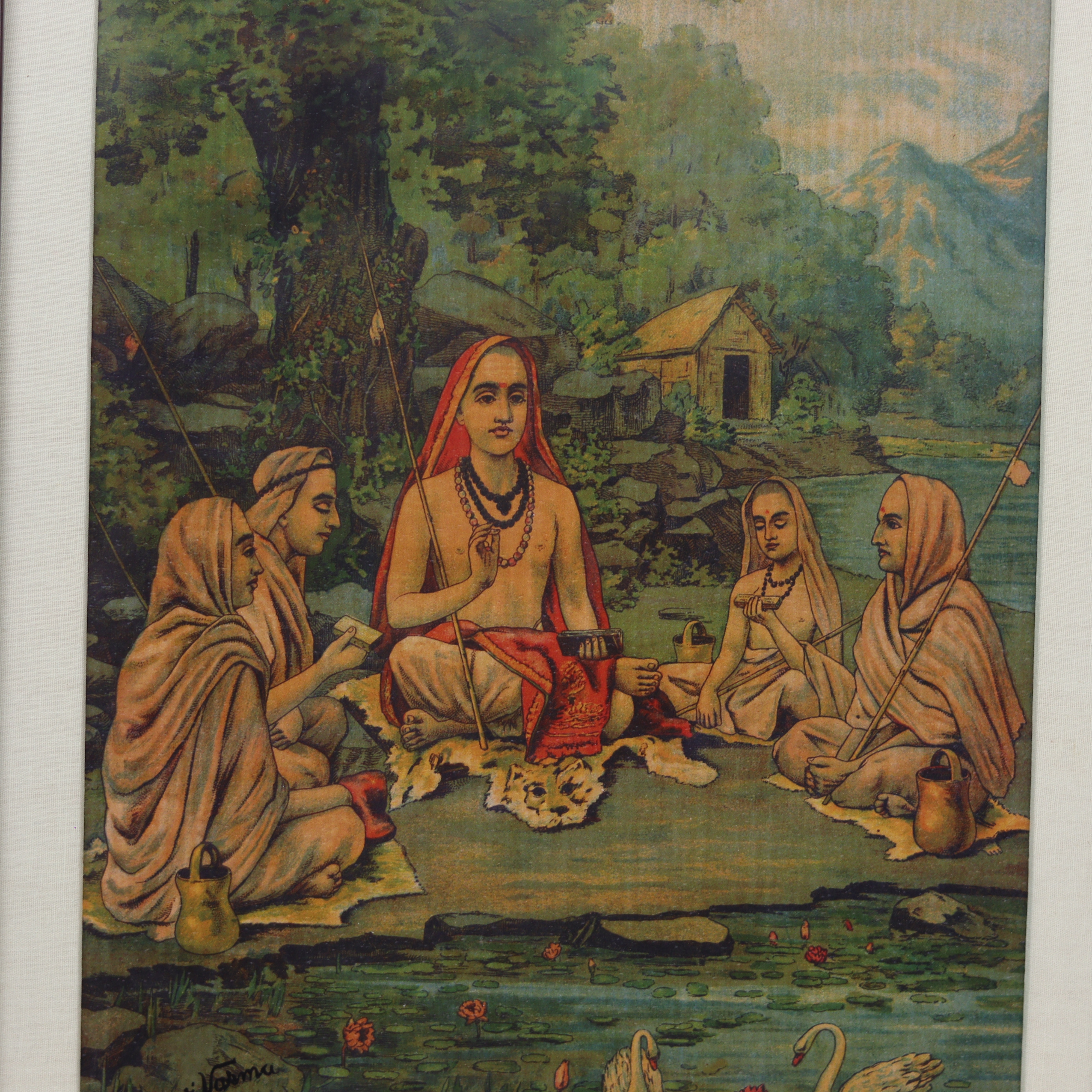 This rare, vintage Ravi Verma print is a true work of art that will elevate any space and transport you to another time and place. Ravi Verma is renowned as one of the most influential and celebrated Indian artists of the 19th century, renowned for his realistic, highly detailed paintings that capture the essence of Indian culture and tradition. This museum-quality piece will be the crown jewel of your art collection and the envy of all your guests. Display it prominently in your home to infuse your space with the beauty, elegance, and rich cultural heritage of India. This is your chance to own a true masterpiece that will be treasured for generations.