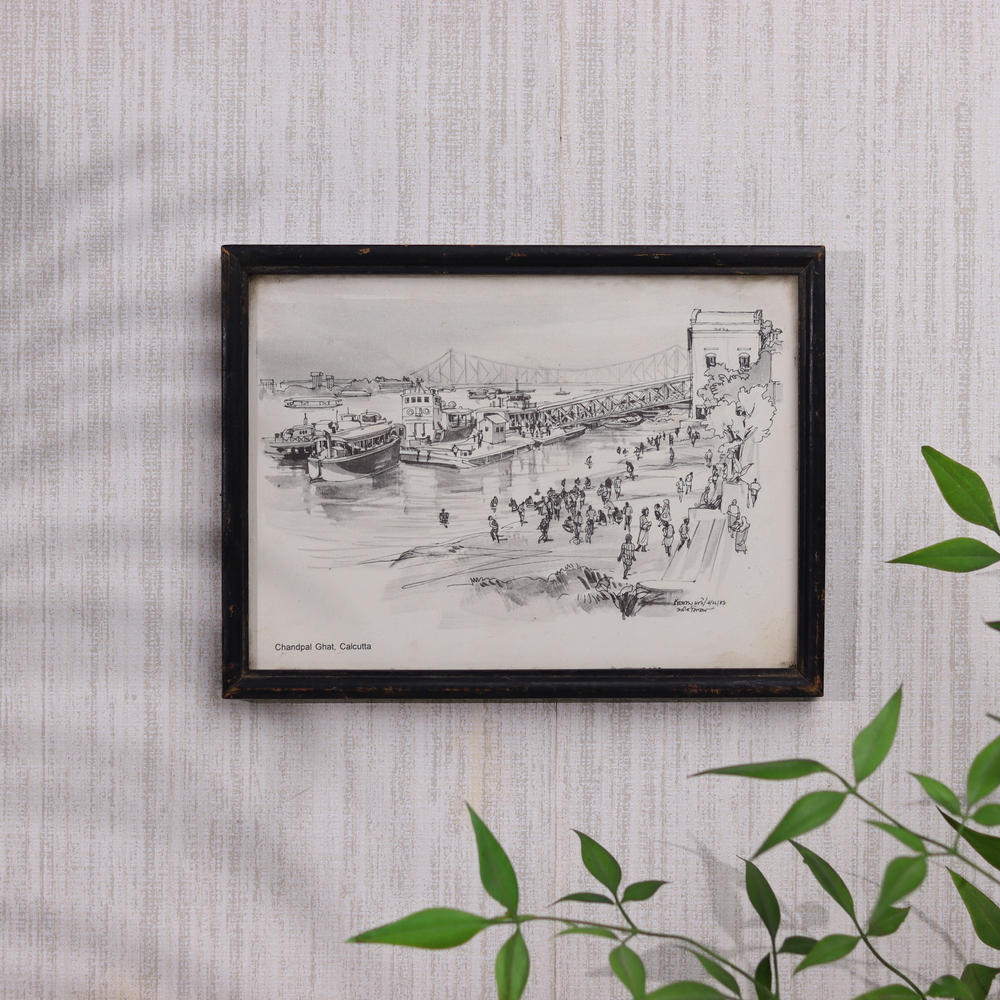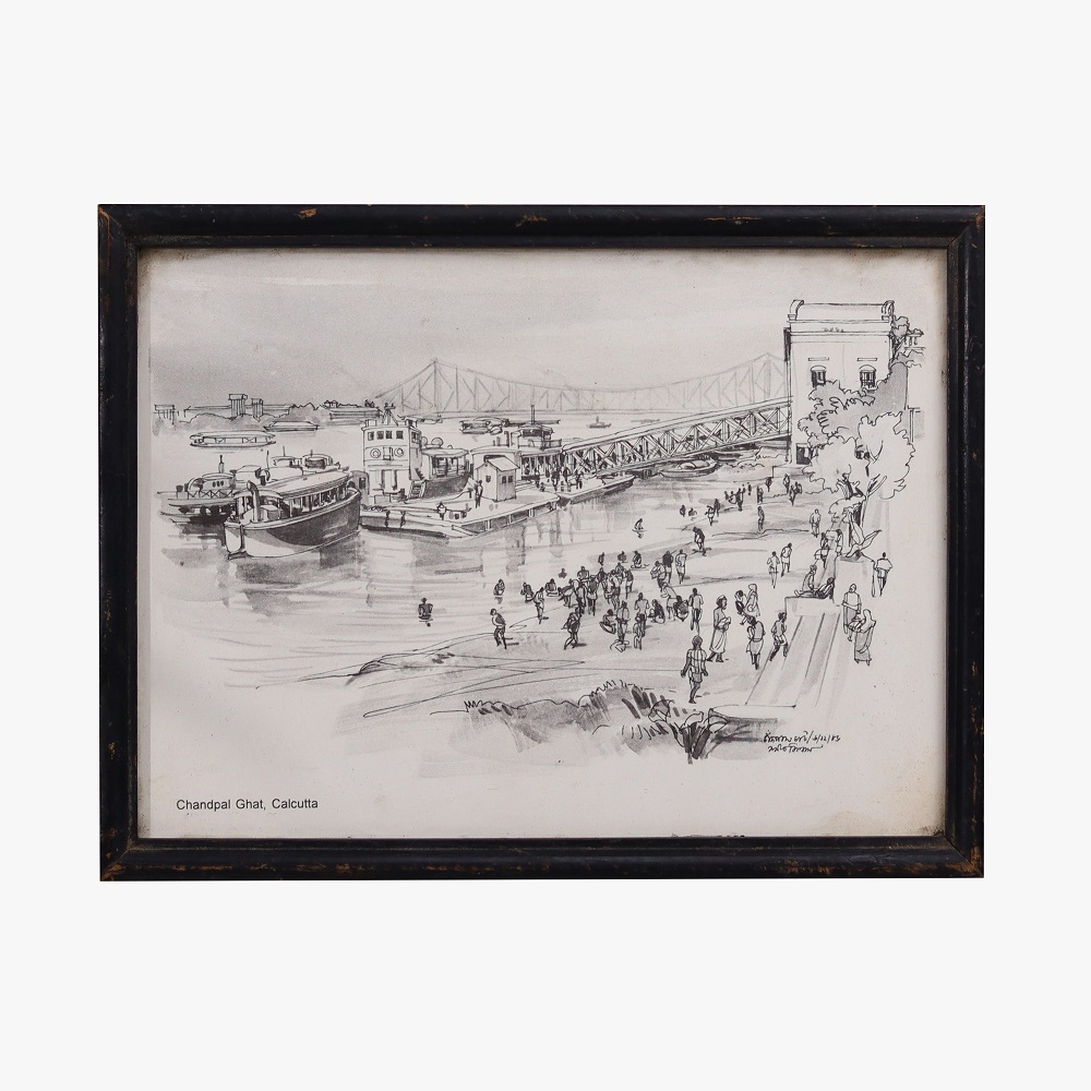 Step back in time with this captivating vintage print of Chandpal Ghat in Calcutta. Immerse yourself in the timeless charm of this historic riverside scene, where the past and present collide in a stunning display of architectural splendor and cultural vibrancy. Gaze upon this stunning print, and you'll be transported to a bygone era when Calcutta was the crown jewel of the British Raj. Marvel at the ornate, colonial-era structures lining the Hooghly River, their intricate facades reflecting the city's rich heritage. Observe the lively crowds of merchants, pilgrims, and passersby, bringing the scene to life with their constant movement and activity. This vintage print is a must-have for anyone captivated by the allure of historic India. Whether you're a seasoned traveler, a lover of art and architecture, or simply someone who appreciates the beauty of the past, this piece will transport you to a world of timeless elegance and cultural significance. Hang it in your home or office, and let it inspire you to explore the wonders of Calcutta's storied past.