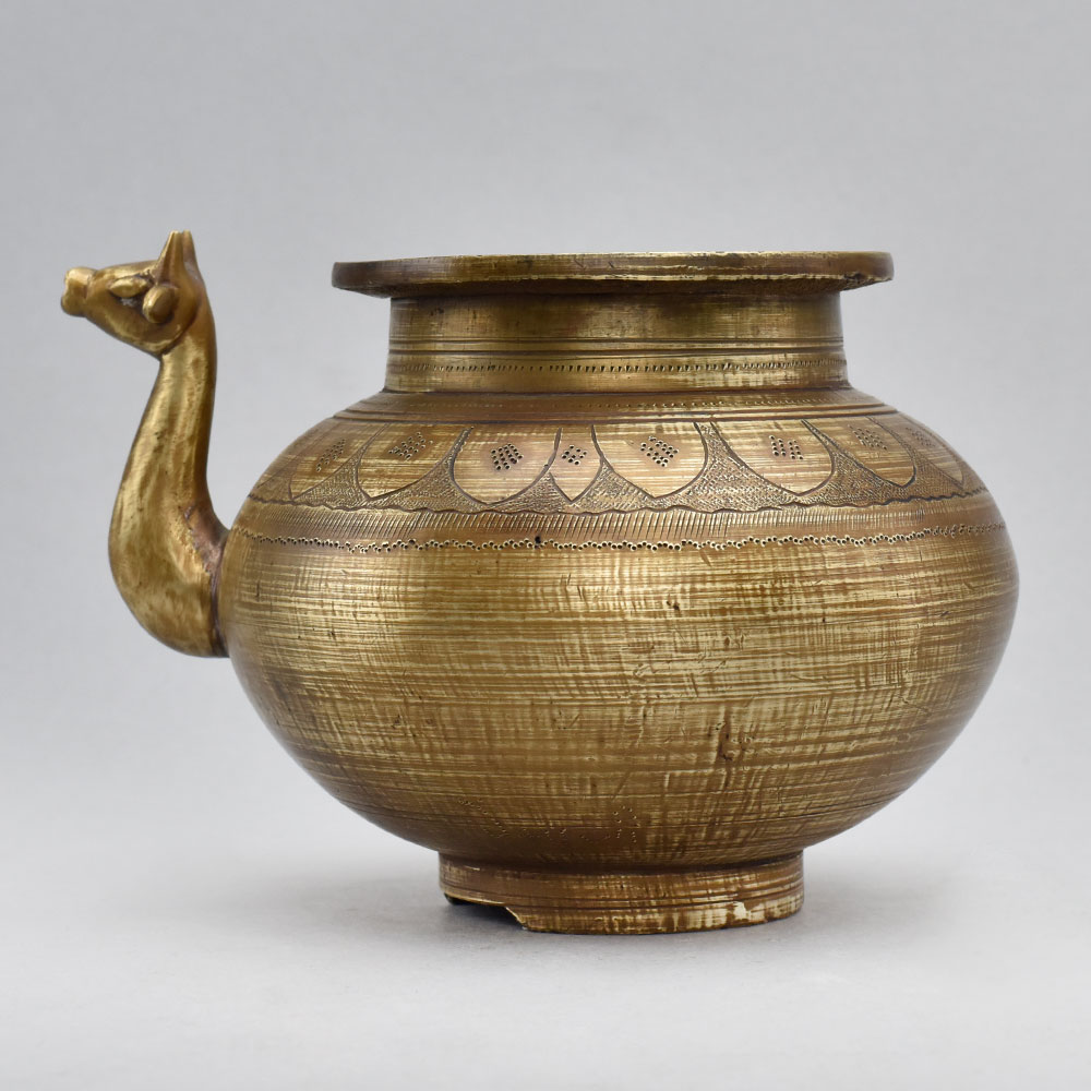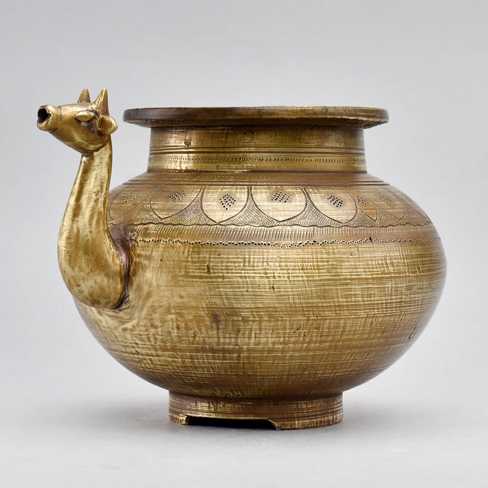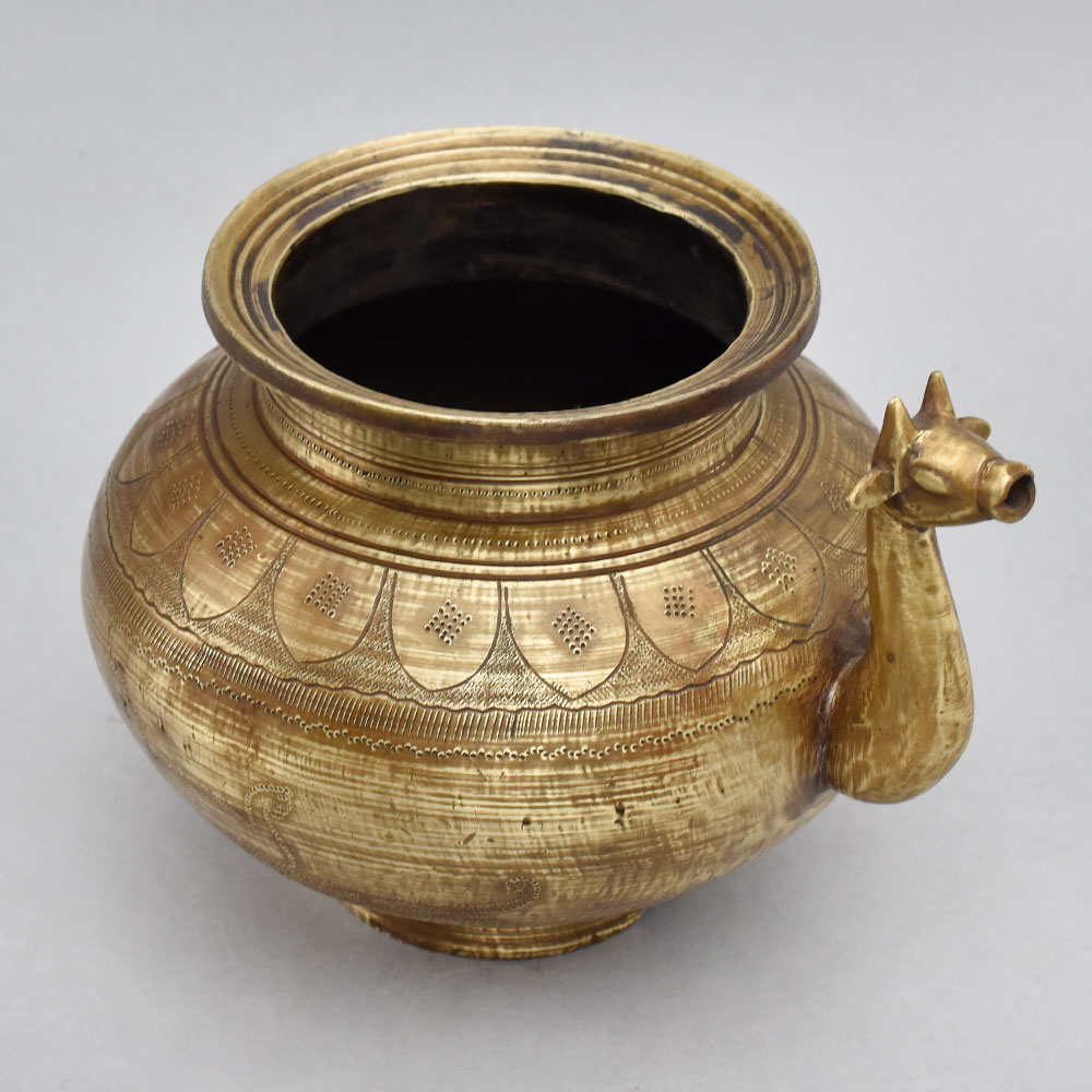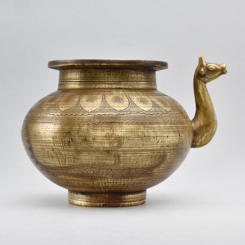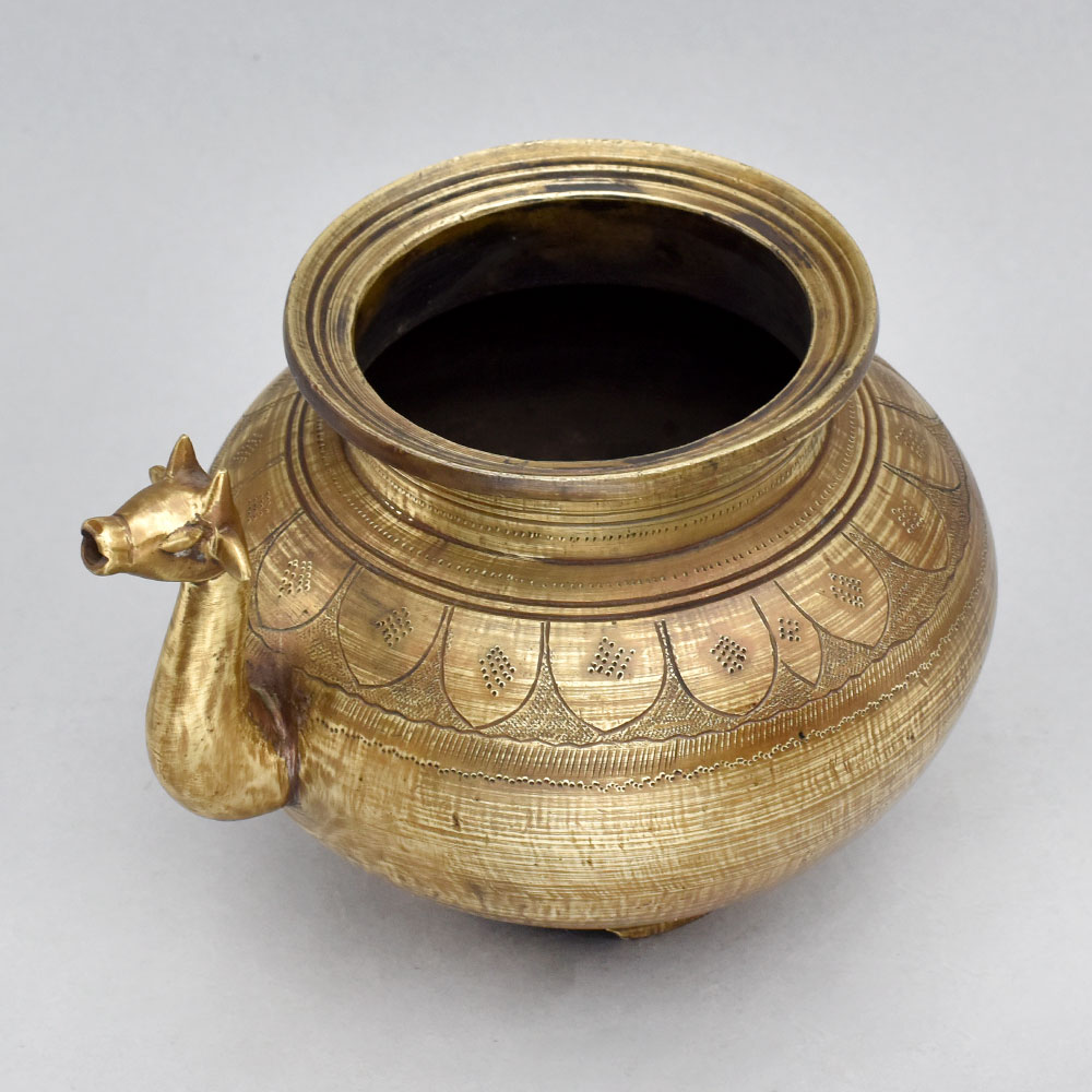 Brimming with old-world elegance, this stunning brass pot is a true work of art. The intricate carvings and animal-shaped spout give it an heirloom-quality feel that will instantly elevate any space. Use it to showcase lush greenery, fragrant blooms, or let the pot's natural beauty take center stage as a captivating decorative piece. Captivate with the vintage allure of this Antique Brass Pot. Handcrafted from solid brass with intricate carvings Unique animal-shaped spout adds a touch of whimsy Versatile design works as both a planter and decorative accent Makes a thoughtful, one-of-a-kind gift Whether you're looking to add a vintage-inspired focal point to your home or find the perfect gift for a loved one, this Antique Brass Pot is a must-have. Its combination of artistry, functionality, and enduring quality make it a standout addition that will be cherished for years to come.