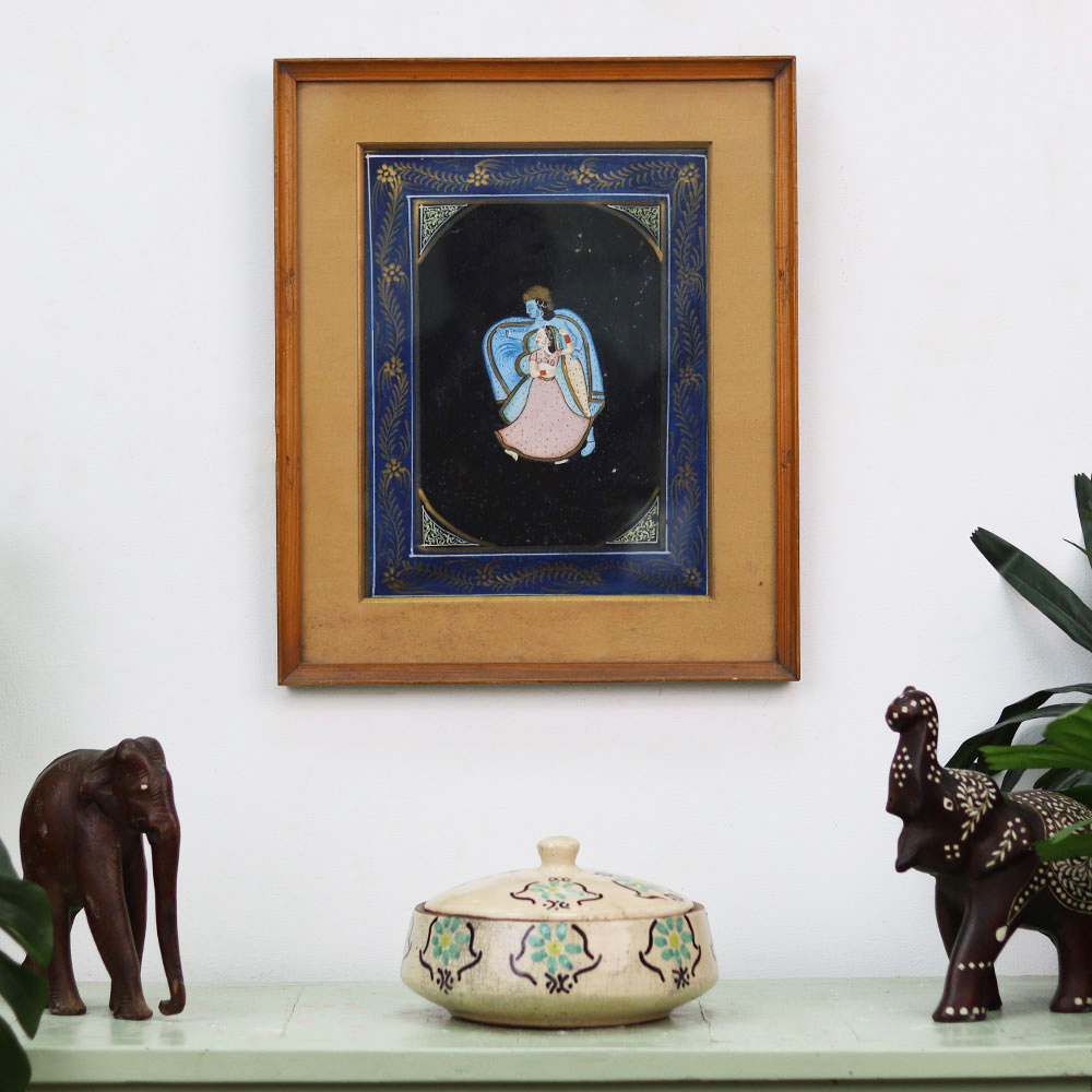 Discover the timeless beauty of a true masterpiece with this stunning Paper Painting in Pahadi Art, featuring the iconic depiction of Radha and Krishna. This vintage-inspired work of art will transport you to the enchanting world of ancient Indian culture and spirituality. This captivating paper painting is not just a work of art - it's a window into a rich, centuries-old cultural heritage. The Pahadi style, renowned for its stunning natural pigments and delicate brushwork, brings the timeless love story of Radha and Krishna to life in a breathtaking display. Whether you're a collector of fine art, a devotee of Hindu mythology, or simply someone who appreciates the beauty of traditional craftsmanship, this vintage-inspired painting will be a cherished addition to your home. Imagine the tranquil energy it will bring to your living room, bedroom, or meditation space, as you gaze upon the divine figures and let the vibrant colors and intricate details transport you to a realm of spiritual wonder. Experience the magic of Pahadi art and let this painting become a treasured part of your personal journey.