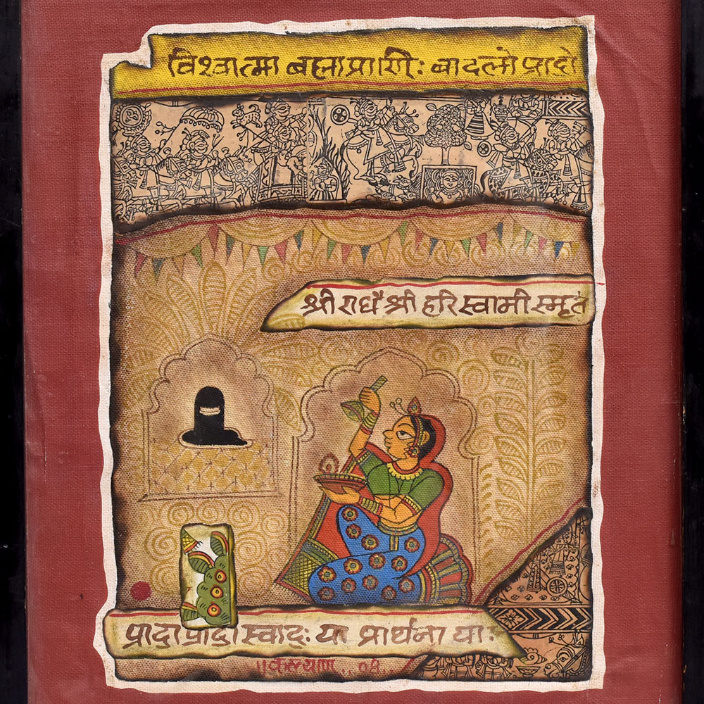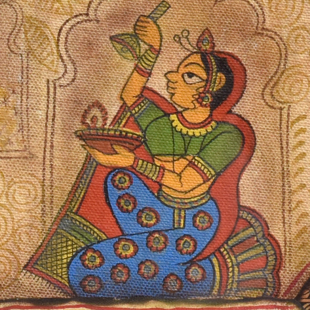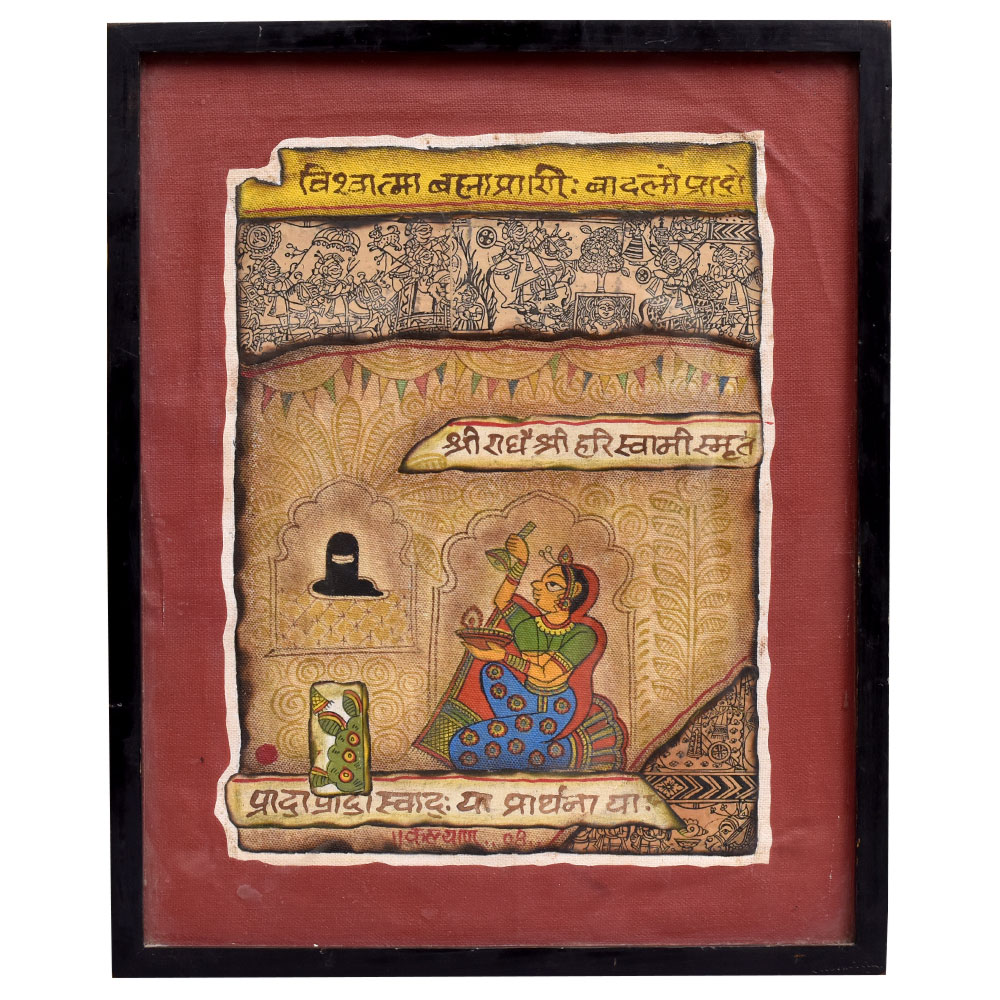 This exquisite painting is more than just a work of art - it's a window into the rich cultural heritage of Rajasthan. The woman's reverent pose, the ornate temple architecture, and the warm, earthy tones all come together to create a piece that is both visually stunning and spiritually uplifting. Whether you're a collector of fine art or simply seeking to infuse your space with a touch of timeless beauty, this Vintage Rajasthani Painting is a must-have addition to your home. Imagine the feeling of serenity and wonder that will wash over you every time you gaze upon this captivating work. Its power to evoke a sense of connection to the divine and the cultural richness of India will transform the ambiance of any room, making it the perfect centerpiece for your living space or a thoughtful gift for the art lover in your life.