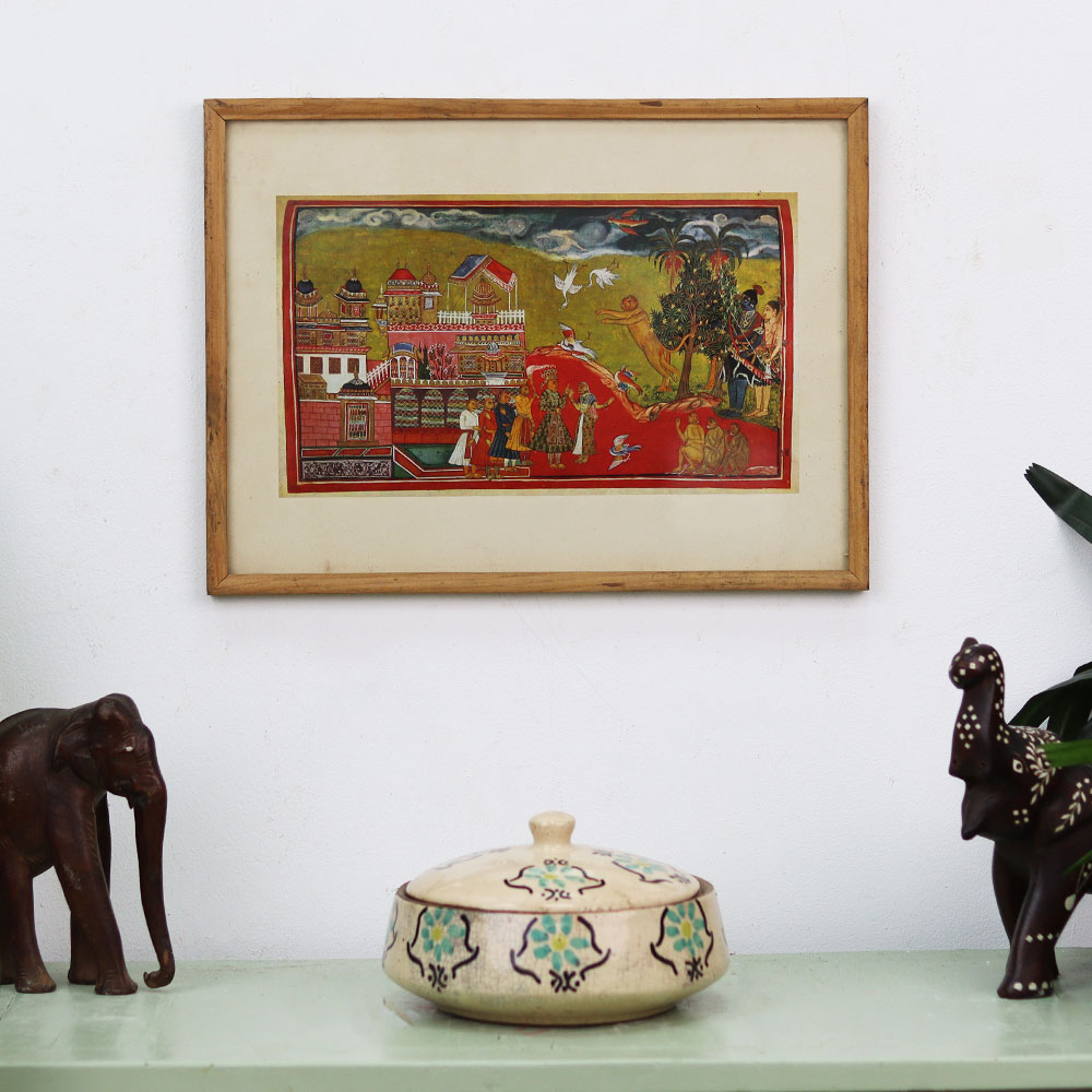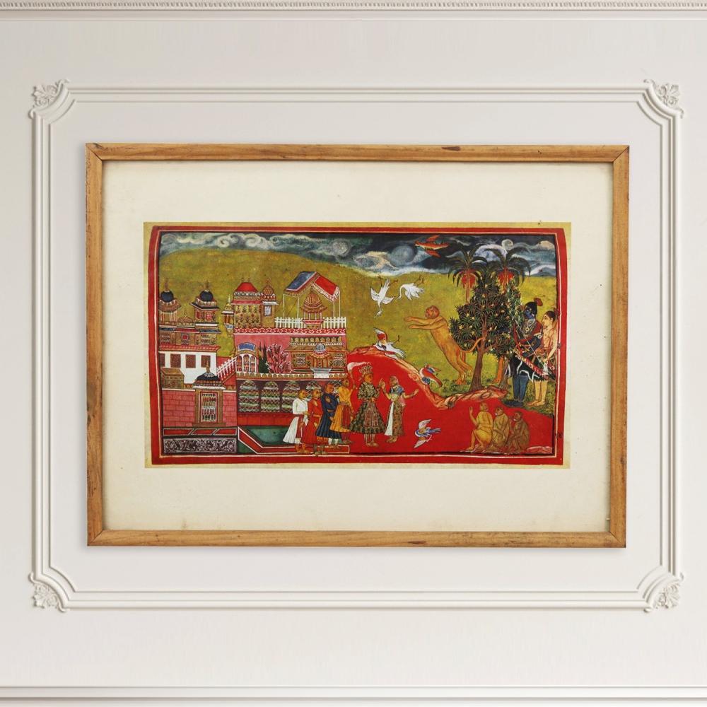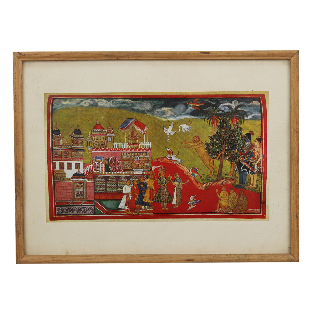 Immerse yourself in the captivating world of the Ramayana with this stunning vintage paper print, now beautifully framed for your home. Meticulously crafted with the finest attention to detail, this piece transports you back in time, revealing the rich tapestry of one of the most beloved epics in Indian literature. Immerse yourself in the captivating tale of the Ramayana, where heroic princes, powerful deities, and epic battles come to life on your wall. This vintage print offers a glimpse into the cultural heritage and timeless wisdom of one of the world's most influential literary works. Whether you're a devoted fan of Indian mythology or simply appreciate exquisite art, this piece will elevate your space and inspire you to explore the depths of this timeless epic.