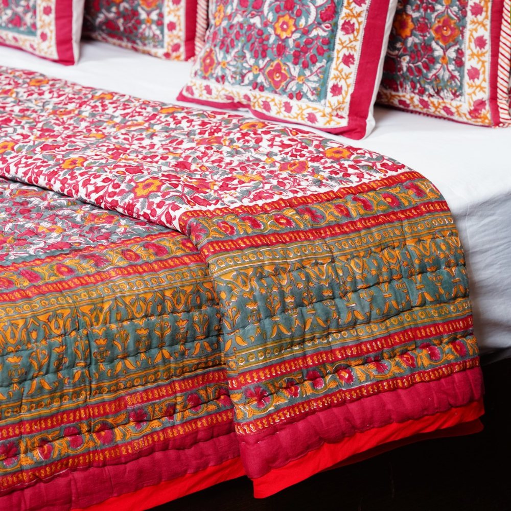 Every piece is hand-block printed, ensuring no two quilts are exactly alike — each one is a unique work of art.
