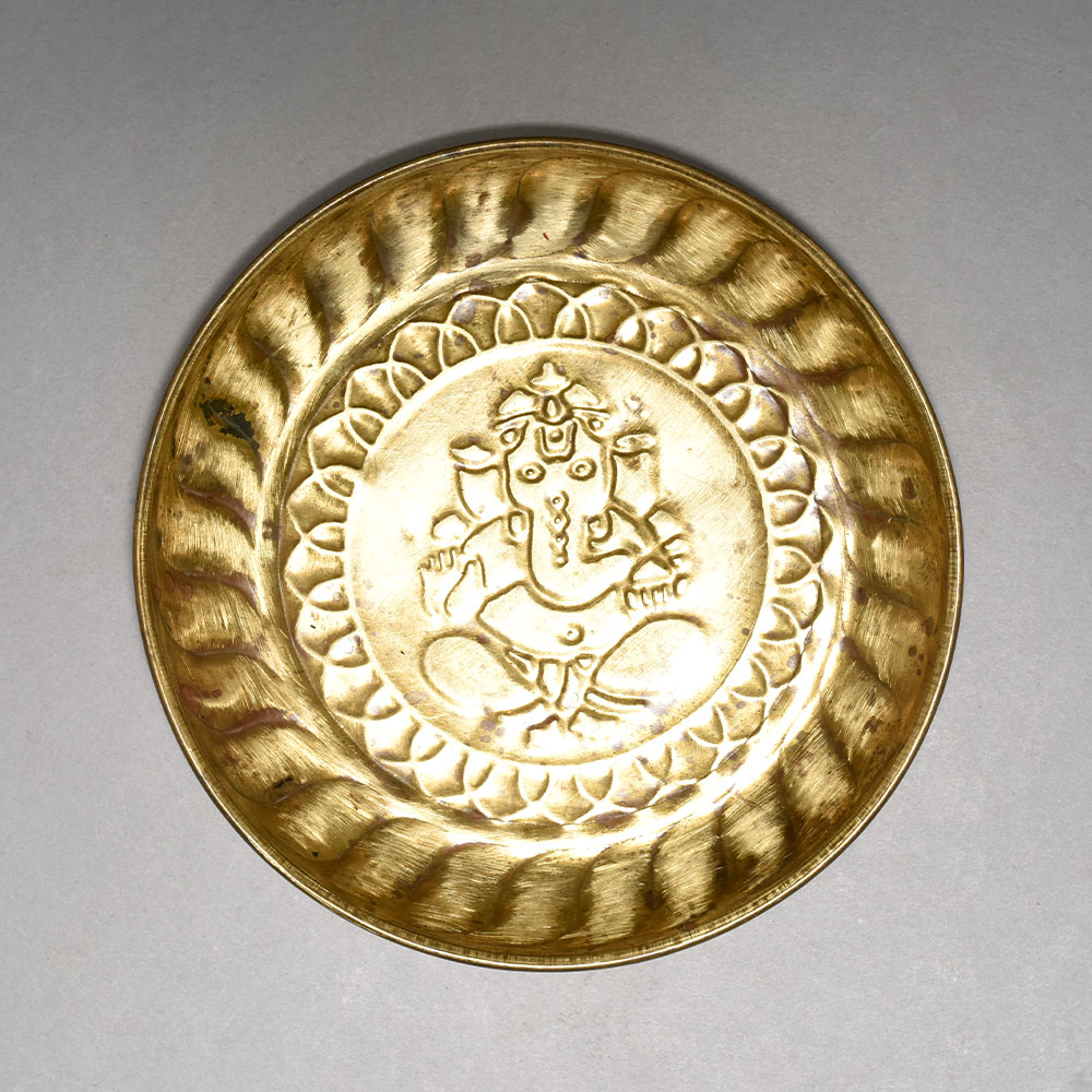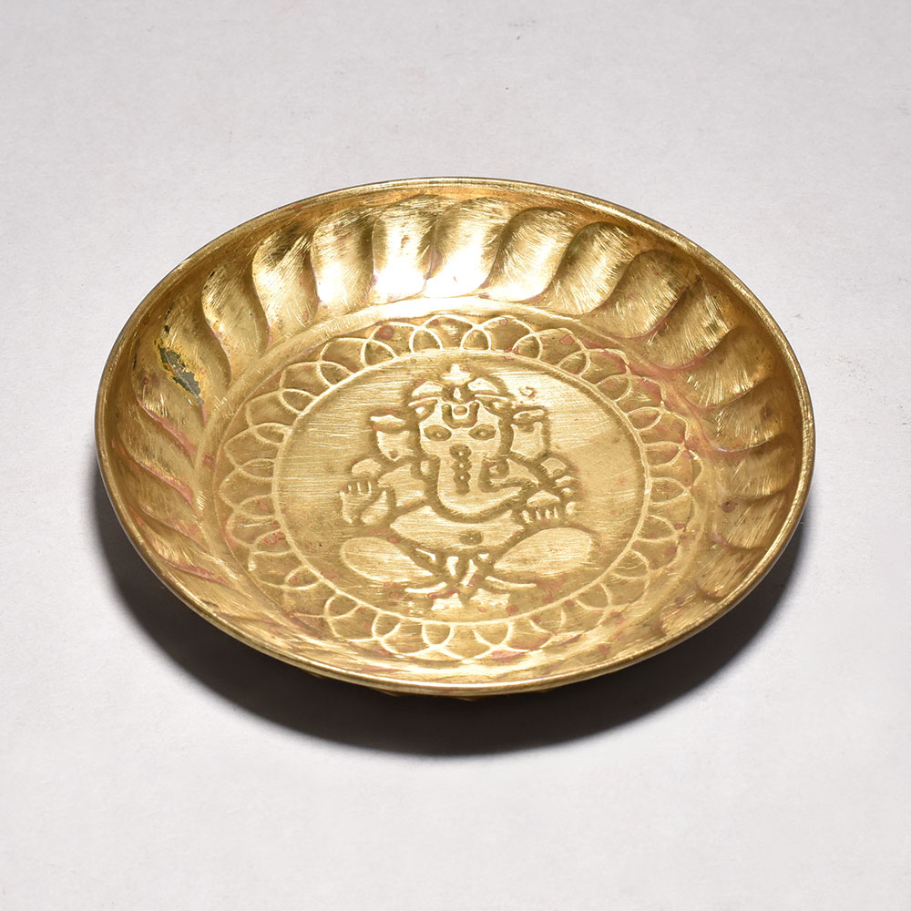 This stunning brass plate is more than just a decorative piece - it's a portal to the divine. The image of Lord Ganesh, the remover of obstacles, imbues this plate with the power to clear your path and invite prosperity into your life. Place it in your meditation area, on your office desk, or anywhere you need a little extra spiritual guidance. Its compact size and eye-catching design make it a beautiful and meaningful addition to any sacred space. Whether you're looking to deepen your spiritual practice or simply surround yourself with uplifting reminders of the divine, the Vintage Small Holy Plate with Ganesh Gaving is a must-have. Elevate your home or workspace with this exquisite brass treasure.