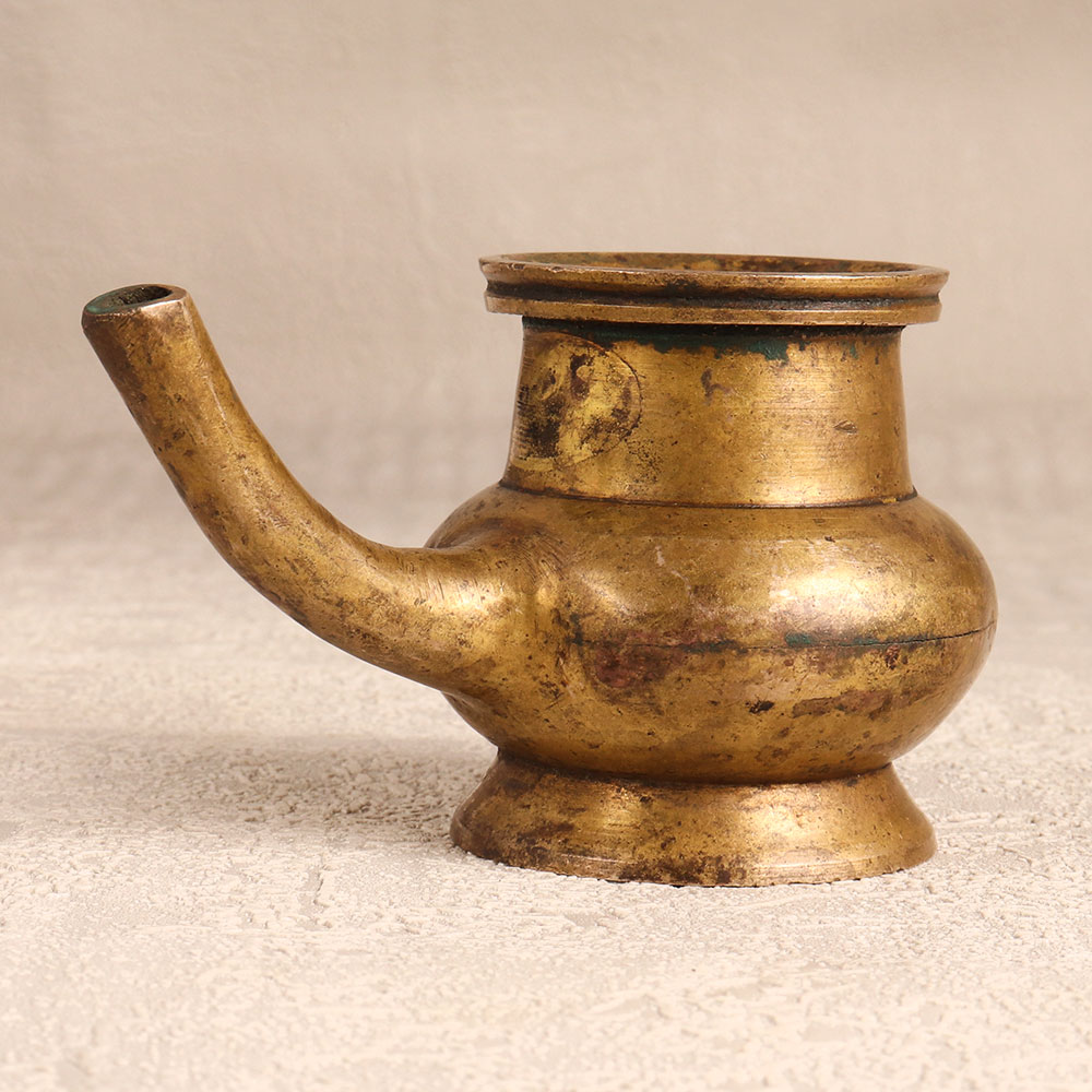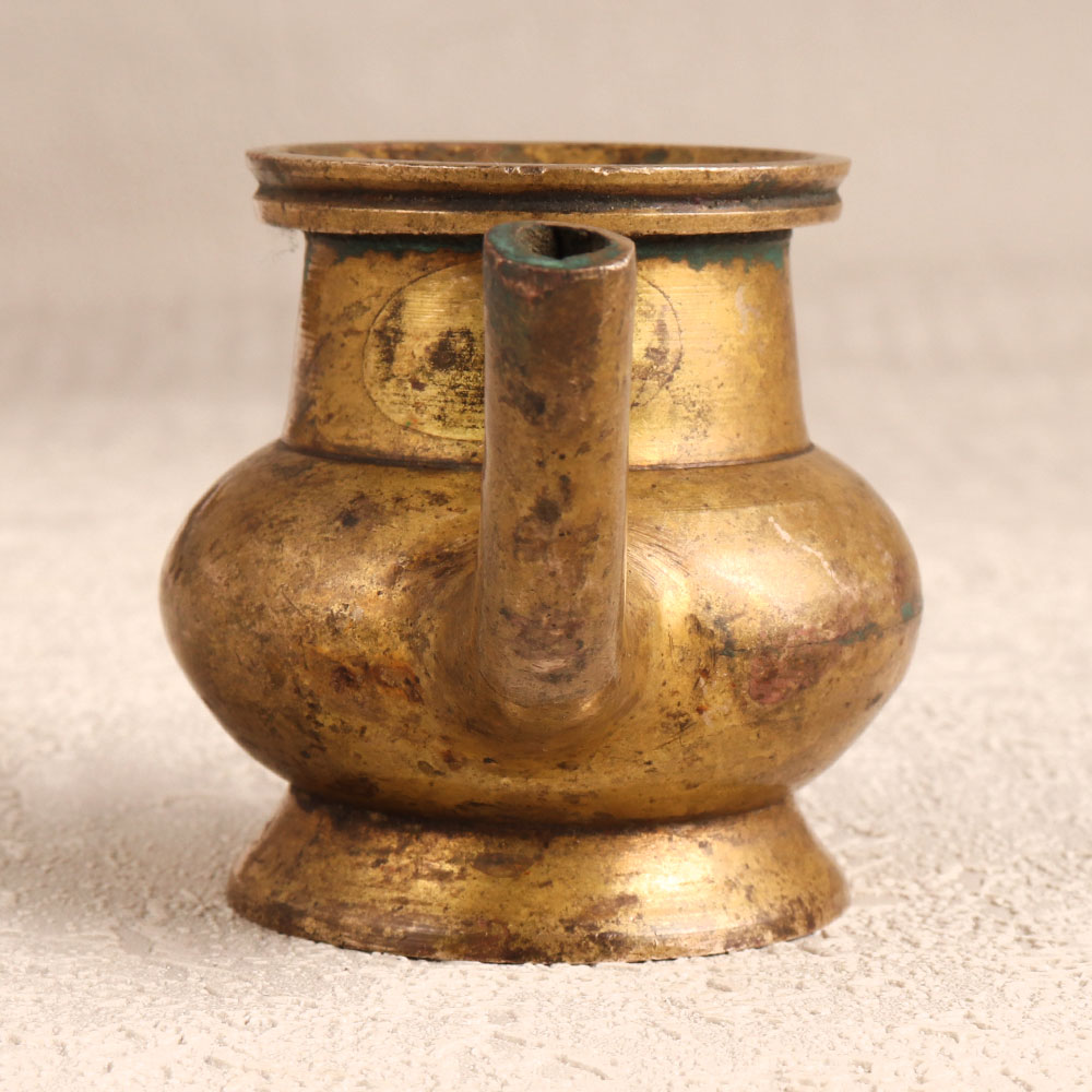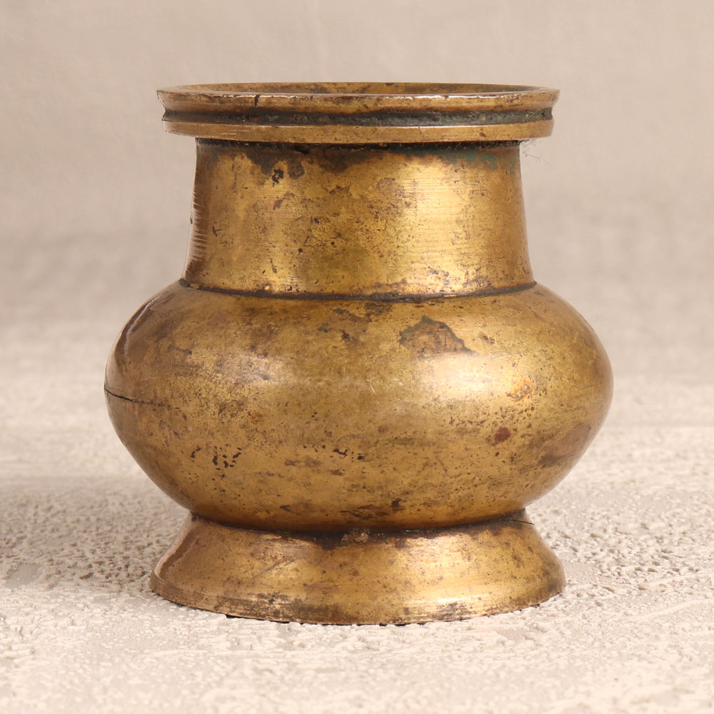A Vintage Brass Holy Water Pot which is affectionately known as the Sagar Pot, boasting an alluring antique brown finish. Meticulously handcrafted by highly skilled and experienced Indian artisans steeped in South Indian Art, this pot emanates timeless elegance. Crafted from high-quality brass, it serves as a sacred vessel during prayers, havans, and rituals, cradling holy water with grace. Beyond its spiritual utility, this pot transforms seamlessly into a charming flower holder, adding a touch of mystique to any setting. Whether adorning your home, office, cafe, restaurant, or hotel, its versatility shines through. A testament to craftsmanship and history, it is a coveted addition to vintage collections and a captivating exhibit piece. Elevate the spiritual ambiance or bestow the gift of sacred charm upon loved ones during special, festive, or auspicious occasions.