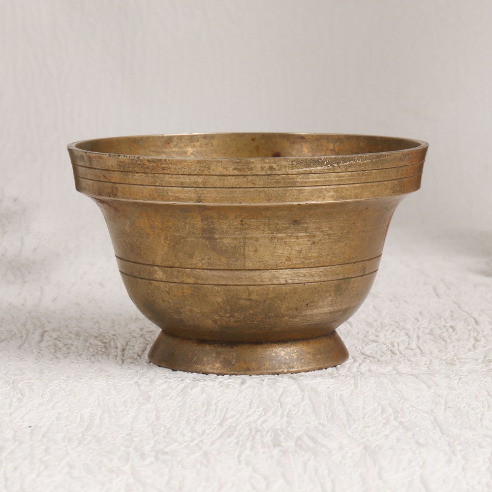 Enhance your home interior with the timeless elegance of this exquisite vintage brass kumkum bowl. Crafted with meticulous care by skilled Indian artisans, this piece showcases the rich heritage of South Indian artistry. The antique brown finish adds an authentic and rustic charm that transports you to a bygone era. Made from high-quality brass, this kumkum bowl is not only a stunning decoration but also a functional piece. Whether you place it in your home, office, restaurant, hotel, cafe, or shop, it radiates an aura of cultural significance and beauty. During prayers, it serves as a sacred vessel to store kumkum tilak, adding a touch of spirituality to your space. This vintage brass kumkum bowl is an excellent addition to your antique collection or exhibition display, showcasing the craftsmanship of Indian artisans. Its versatility makes it a thoughtful gift for your loved ones on special, festive, or auspicious occasions, spreading the charm and cultural richness of India with every use.