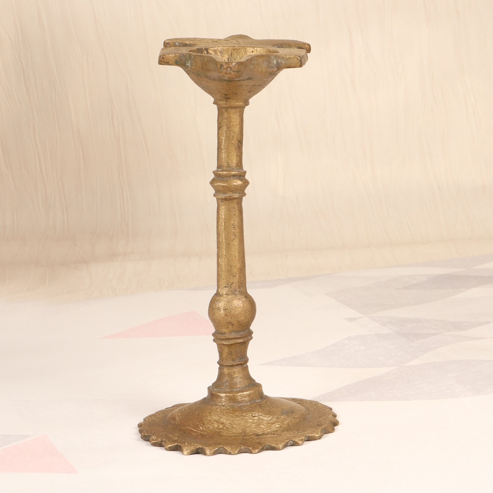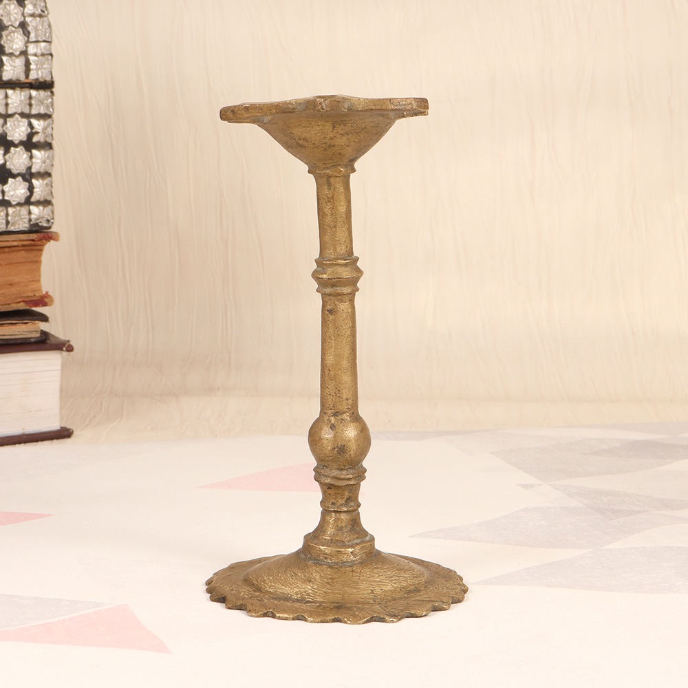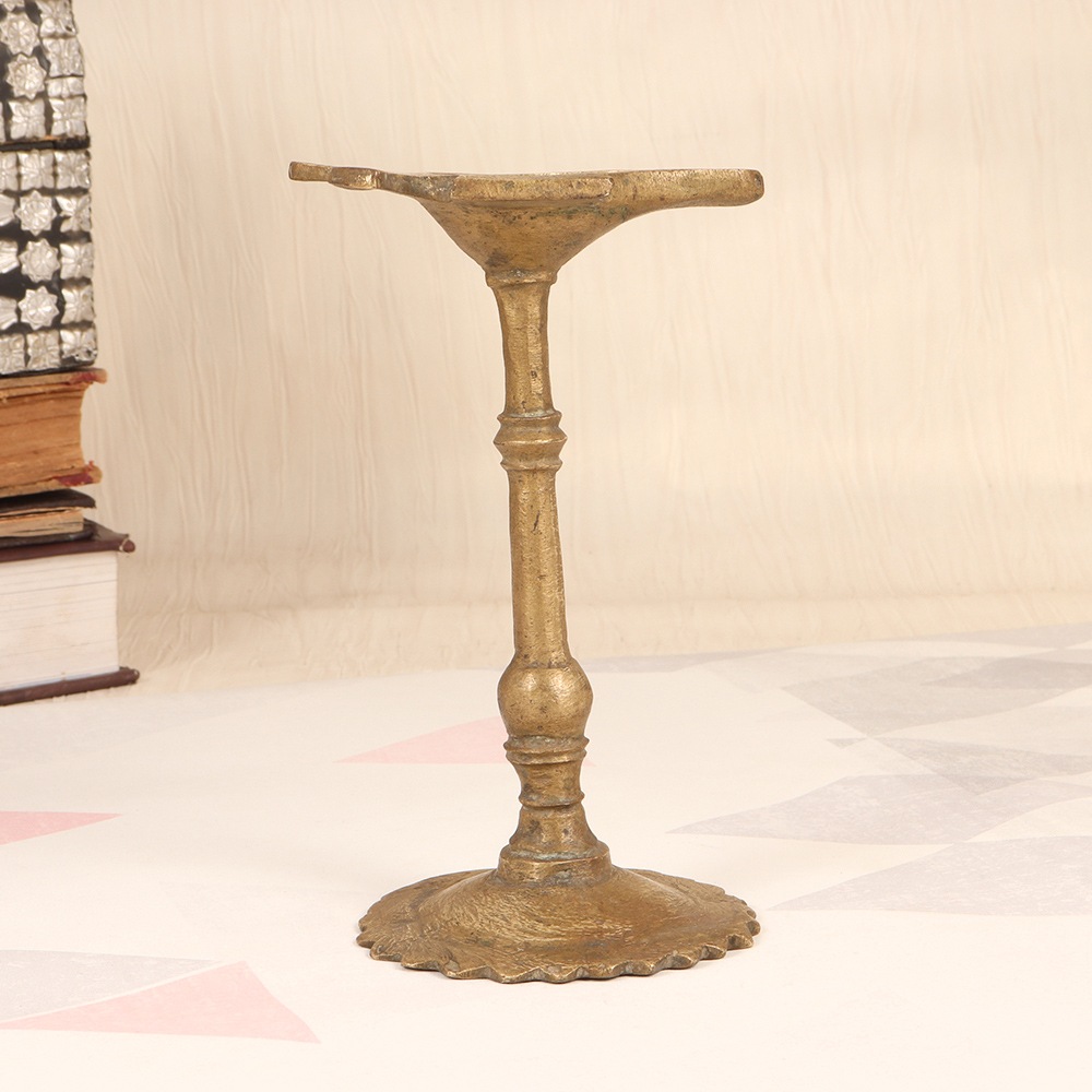Immerse yourself in the captivating allure of a bygone era with our exquisite vintage brass oil lamp. Crafted with meticulous attention to detail, this lamp harnesses the power of natural illumination, casting a warm, inviting glow that will transform any space. Imagine the soft, flickering light of this brass lamp dancing across the walls, creating a serene and tranquil ambiance. Whether you're looking to set the mood for a romantic evening, or simply seeking a natural, eco-friendly lighting solution, this oil lamp is the perfect addition to your home. This lamp is a true testament to the enduring artistry and craftsmanship of South India. It's not just a functional piece – it's a work of art that will captivate and inspire all who behold it. Elevate your living space and immerse yourself in the timeless beauty of this stunning brass oil lamp.