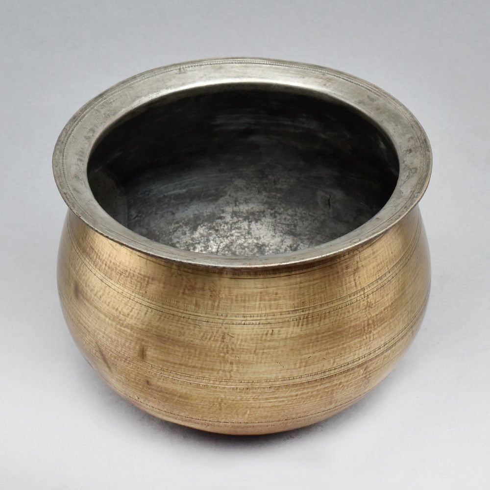 Bring the timeless allure of South Indian artistry into your home with this captivating Vintage South Indian Art Plain Brass Pot.This striking brass pot is more than just a decorative accent - it's a testament to the enduring legacy of South Indian craftsmanship. With its generous proportions and timeless aesthetic, this piece can seamlessly integrate into your living space, serving as a striking centerpiece or a functional vessel for your kitchen or home. Whether you choose to display it proudly or put it to practical use, this Vintage South Indian Art Plain Brass Pot will infuse your surroundings with the captivating essence of India's artistic heritage. Ideal for homeowners, designers, and decor enthusiasts seeking to infuse their spaces with a touch of authentic Indian flair, this versatile brass pot is a must-have addition to any discerning collection. Handcrafted from premium brass in the rich artistic traditions of South India Rounded, wide-mouthed design for versatile use as a decorative piece or functional vessel Sturdy, durable construction built to last Adds an authentic touch of Indian charm to any space